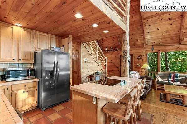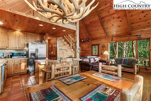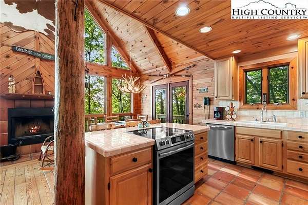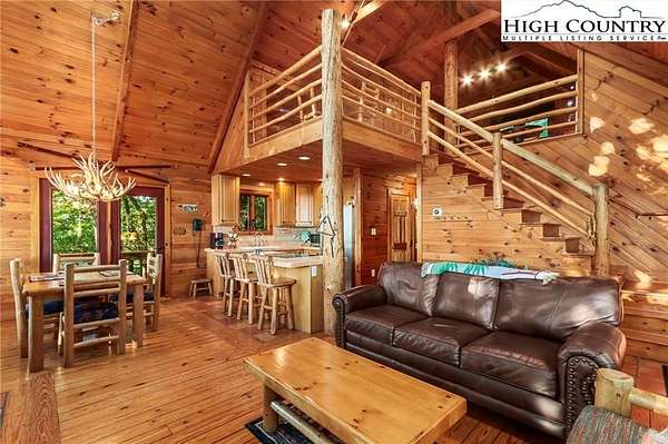A cozy 3 Bedroom, 2 Bath cabin nestled in the Blue Ridge Mountains offers breathtaking views and a relaxing hot tub experience. Imagine yourself unwinding in the warm, bubbling waters of your private hot tub, surrounded by the tranquility of nature and stunning panoramic vistas. The interior with the vaulted ceiling, and its exposed beams and rich wood tones, creates a sense of spaciousness and rustic elegance. Seller has added new stainless-steel appliances, newer HVAC, new retaining wall, and new exterior stain. This is the perfect getaway for those seeking a serene peaceful retreat. Located in the gated community of Leatherwood which offers horseback riding, hiking, trout fishing nearby, swimming pool, ziplining and much more. Furnishings negiotable with a few exceptions.