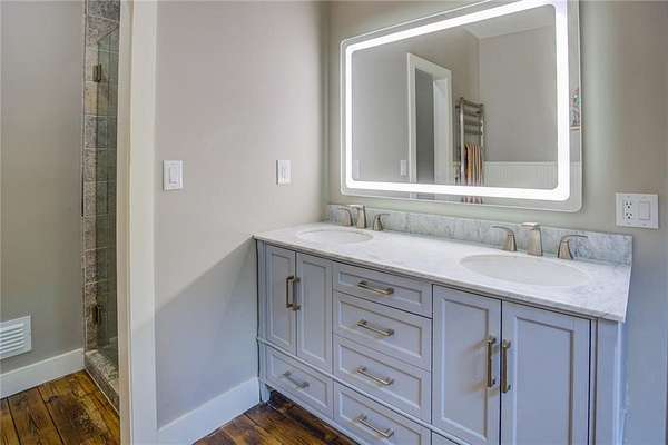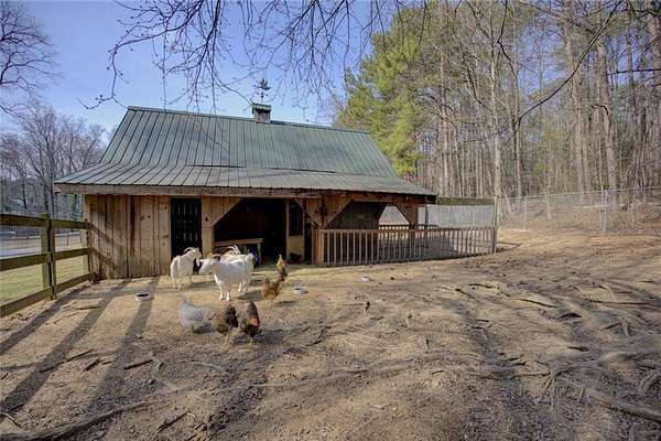 Handsome 2 story 6 bedroom home on over 4 private acres! Beautiful 5" plank hardwood floors thru out from recycled Boxcars!! Formal LR & DR flow to Dream Eat in kitchen w/imported gas range (incl 3 ovens) & grill,Marble island & counters. Cozy beamed family room w/brick fireplace. Huge Owners suite on main boasts private sitting room/office/nursery, huge bedroom w/ fireplace, Clawfoot soaking tub/ sep shower & his/hers walk-in closets. 4 BR 2BA on 2nd floor and Man Cave game room in Basement; Deck spans length of house w/hot tub and view of grounds. Barn includes chicken coop, & fenced paddock with water. Long driveway gives privacy. Small Brick house can be for In-Law or 2 sep apartments. 2 BR1.5 BA on main, 1BR/1BA in finished basement. Both include kitchen and large Living rms. Located just minutes to Award winning schools, shopping, Eateries and I-20.
