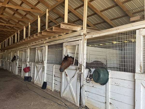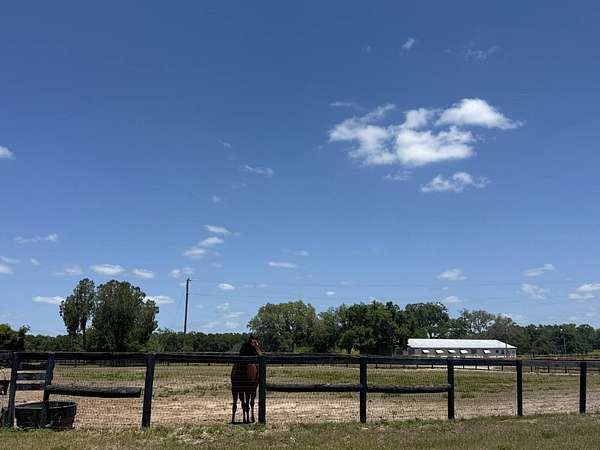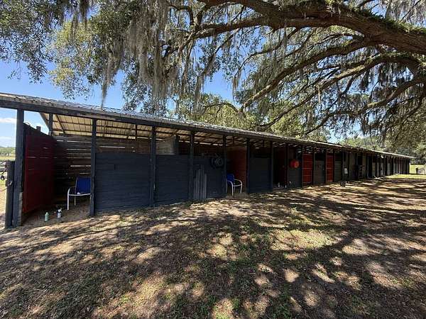 Located in a premier equestrian corridor just west of Ocala, this 108+- acre horse farm offers a rare combination of operational scale, strategic location, and long-term potential. With significant road frontage along W Highway 40, the property sits directly across from the nearly 700-acre Golden Ocala acquisition-a major development poised to enhance the surrounding market and equestrian landscape. Purpose-built for large-scale equestrian use, the property includes over 14,000 square feet of barn infrastructure, featuring two expansive horse barns, multiple open sheds, utility buildings, and general-purpose storage. A regulation training track anchors the layout, surrounded by several cross-fenced paddocks and more than 27,000 linear feet of board, vinyl, wire, and masonry fencing. The residence on site, constructed in 1958, provides approximately 3,483 square feet of combined living space. Utility infrastructure includes multiple wells and septic systems, electric service, and paved internal roads. With close access to Ocala, Gainesville, and Tampa, and surrounded by top-tier training centers and farmland, this property is ideally suited for a training or breeding facility with future development potential. The combination of equestrian infrastructure, zoning flexibility, and premier location makes this a standout opportunity in Florida's horse capital. Improvements: Home, Barn 1 - 30 Stalls (Includes Bathroom & Two Tack/Wash Stalls), Barn 2 - 17 Stalls (Includes Tack Room), Barn 3 - 20 Stalls (Includes Tack Room), Shop, Carousel, Track & Starting Gate, and Several Fenced Paddocks.