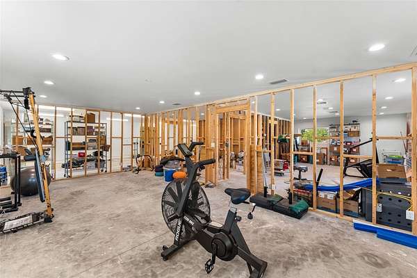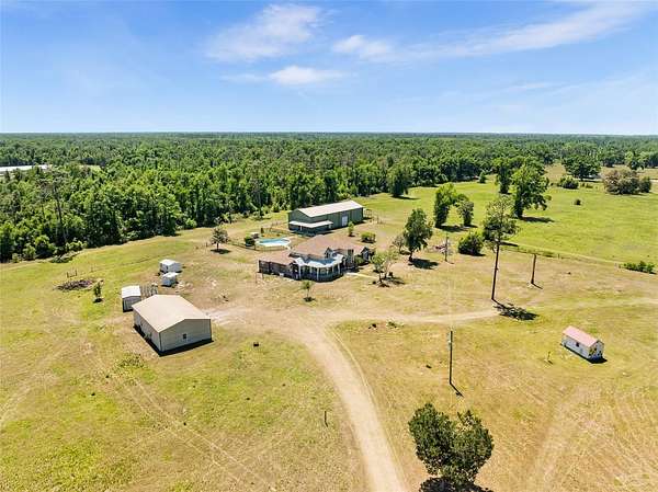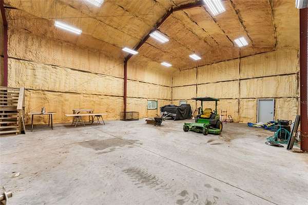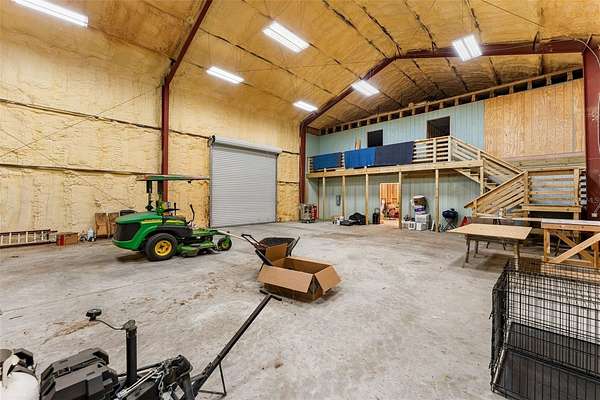Outside, you’ve got a private pool, multiple sheds, and a four-bay garage with roll-up doors. One of the biggest highlights is the 100x50 insulated workshop with three HVAC units. About half is still set up as an open garage with a 12-foot RV door, and the other half has already been framed and wired for a two-story living or office space, just waiting to be finished out (buyer to verify use).