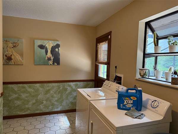 - Chair Rail, Eat-In Kitchen, Living Room/Dining Room Combo, Primary Bedroom Main Floor, Solid Surface Counters, Solid Wood Cabinets, Split Bedroom, Thermostat, Walk-In Closet(s)