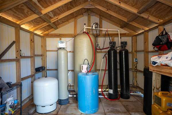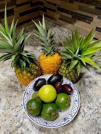 The expansive front yard has sprinklers for the maturing fruit trees. Currently you can enjoy pink or white guava, avocado, grapes, dragon fruit, bananas, grapefruit, and pineapple. Soon you will have tangerine, lemon, pear, and peaches. Located near the fruit trees is a charming chicken coop ready for you to enjoy farm fresh eggs. Next to the coop is the well house, complete with electricity, lights, protective roofing and cement pavers for easy cleaning. This is a robust system that services the entire house and more. Yes, no water bills!