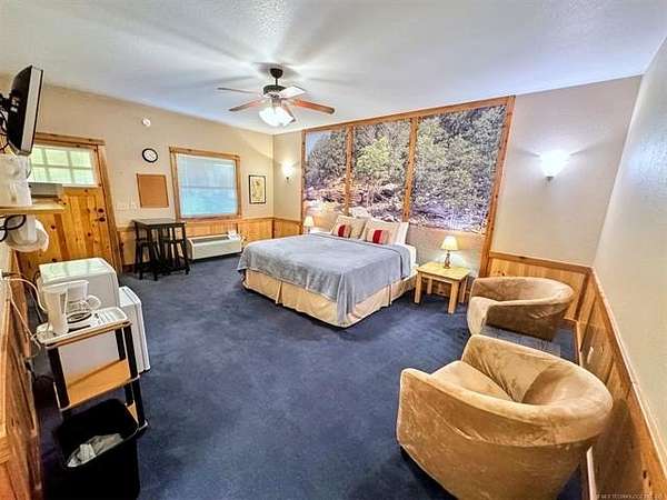 Currently operating as a year-round Bed & Breakfast, this unique property offers over 14,000 square feet under roof and is fully furnished, ready for immediate use as a wedding venue, wellness or yoga retreat, event center, or expand the vision with additional cabins for increased income.