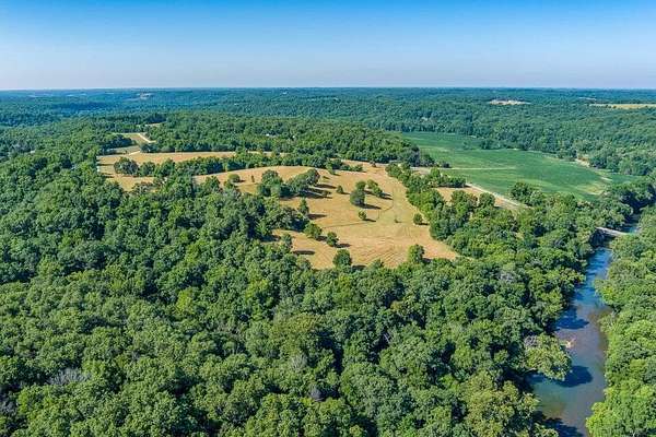 Almost 50 acres in Christian county with JAMES RIVER access. Take a swim in the river or put your kayak in right from your own property. The view from the ridge tops of this property are truly stunning! There are multiple building sites for your dream home or divide into parcels or both. This property has been very well maintained. With hay being cut each year. There are beautiful trees (lots of walnut) scattered throughout and boulders from a 100 year old foundation were left for possible future use. There is already a well, electric, and an old milk barn on the property. There is a spring at the river. All of this just minutes to shopping in Nixa.