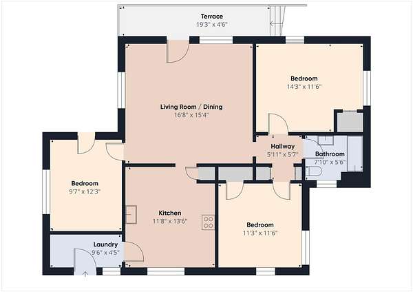- Bathroom x 3, Bedroom x 3, Laundry Room
