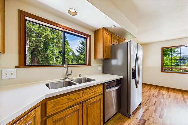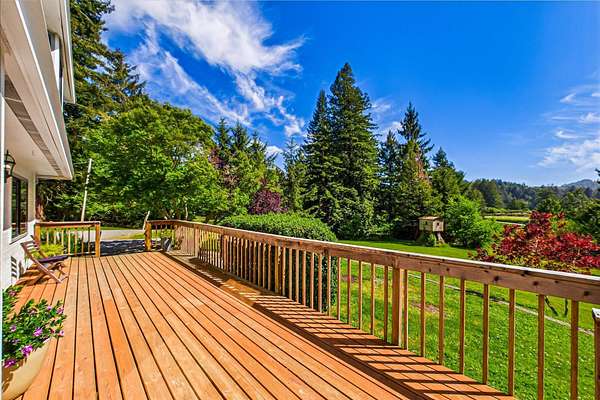 Discover this rare and serene Humboldt County property--featuring two beautiful homes on over 10 acres of sun-soaked land, just 10 minutes from Eureka. The main home offers approximately 2,400 sq. ft. of well-maintained living space with 3 spacious bedrooms and 2.5 bathrooms. Step inside to find brand-new carpet throughout, freshly refinished hardwood floors, and a bright, open-concept layout that showcases stunning views from every window. The oversized living room and kitchen are perfect for entertaining, complete with a brand-new stove and refrigerator, and durable Corian countertops. Enjoy peaceful mornings and golden-hour evenings from your sunny front deck or private backyard patio. Additional features include RV parking, your very own tree house, and plenty of room for outdoor activities, gardening, or horses. Towering mature redwoods and park-like pastures create a truly magical setting. The second home is a charming 3-bedroom, 1-bath residence. Recently updated with new carpet, vinyl in the kitchen and laundry room, and a refreshed kitchen and bathroom, it's ideal for extended family, guests, or as a rental income opportunity. Whether you're seeking a multi-generational homestead, rental income potential, or a quiet retreat just minutes from town, this property has it all. Don't miss out, schedule your private tour today!