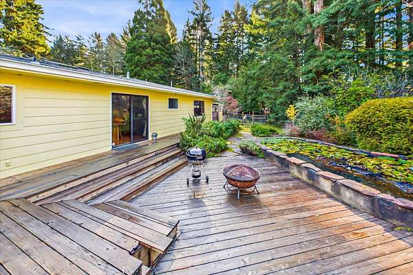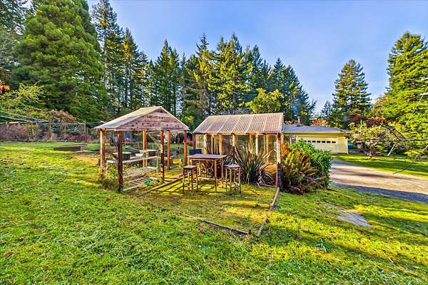 Peaceful rural living with convenient access to town, Cal Poly Humboldt, and Arcata's local amenities. This custom home sits above the fog on 1.84 serene acres, just two miles up Fickle Hill. Enjoy single-level living with 3 bedrooms, 2 full bathrooms and 2,074 sq. ft. of comfortable, well-designed space. Beautiful hardwood floors flow throughout the home, and the inviting living room with a cozy wood stove offers warmth and charm. A spacious den/family room over looking the lush grounds offers built in storage and a murphy bed. The updated kitchen features stainless steel appliances, corian countertops, breakfast bar and is adjoined by a formal dining room. The updated bathrooms, newer roof, and fresh interior paint make this home move-in ready. Step outside to multiple decks and patio Step outside to multiple decks and patios, perfect for entertaining or quiet relaxation. Highlights include a wood-fired pizza oven, Koi pond, and a hot tub just off the primary bedroom. The property is a gardener's delight with a greenhouse, raised beds, dahlia garden, blueberry patch, and an assortment of fruit trees, Japanese maples, and dogwood. A versatile barn is ideal for 4H projects, storage, or hobby use and there's ample room for horses. A rare combination of natural beauty, privacy, and convenience, behind a locked gate! Call today for a private showing!
