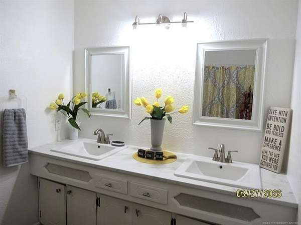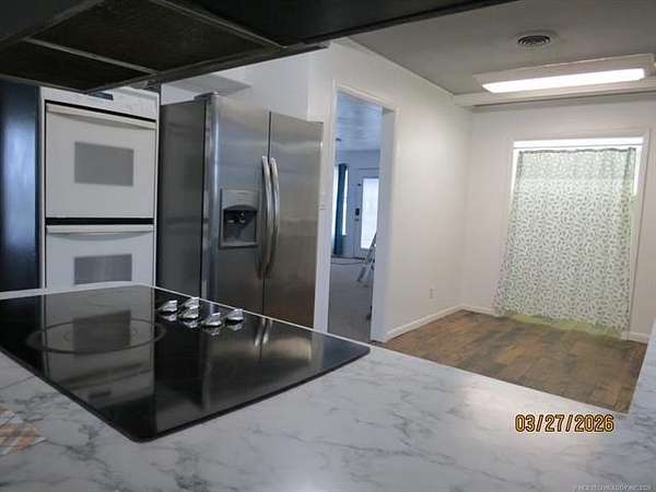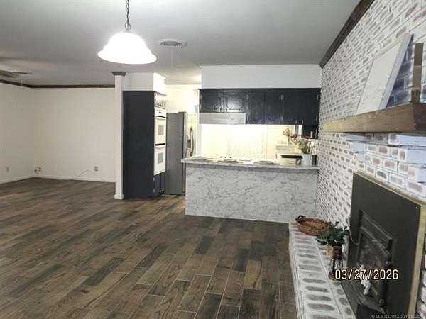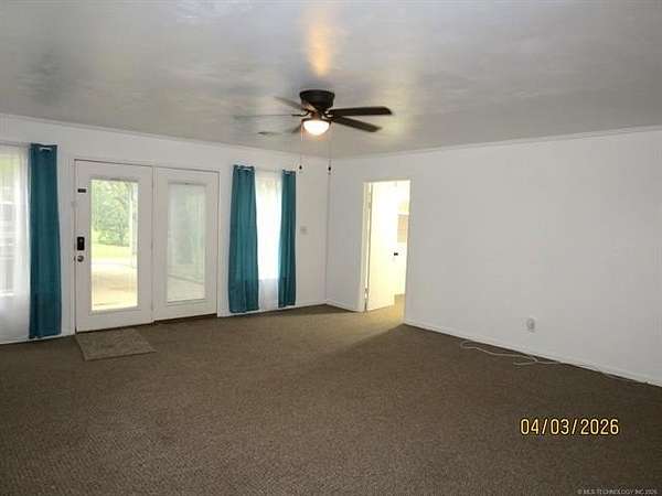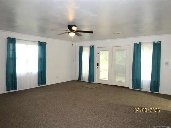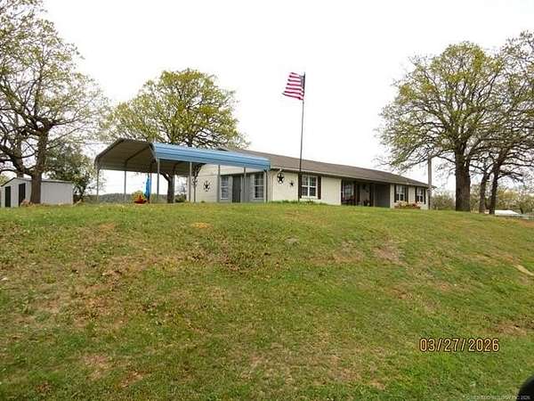 COUNTRY LIVING-CLOSE-IN! Serene & Peaceful Setting! Move-in ready 3 Br, 2 Ba Brick Home with 1938 Sf living on 1.79 m/l acres with a detached 720 Sf Garage with work benches and electricity, plus a 2 car carport on concrete parking at the house and a 200 Sf metal storage building separated into 2 areas with 2 entrance doors. The entrance Road off US Highway 270 W ends in a Cul-De-Sac; resulting in No-Thru Street Traffic and only 2 other homes on this street. The covered front porch invites you to unwind after a hectic day, enjoying the tranquil view of the neighbor's pasture with grazing cattle, relax to a cup of coffee in peace & quiet or be inspired by beautiful sunrises and sunsets. Great view of the Expo's 4th of July fire works. Family, kids, Dogs, Friends all will have fun on doing outdoor games and BBQ's. Plenty room for RV or Boat parking too! The current Owner made many improvements during their Ownership of 8 years. Just to name a few of many: Aerobic Septic System, Tiled floors & carpet, Wood Shutters, carport, remodeled bathrooms and much more. A long list of improvements is available for your review at showings. Your family may enjoy the 2 roomy living areas; one for parents, one for kids or elders. The desirable open dining-living area and the double-oven is perfect for entertaining. There is ample of storage space throughout the house, too. 2 linen closets, pantry room for freezer, hunting gear, safe and more. The enticing outside offers generous space to have family BBQ's, room for kids and dogs to play, dog houses and a wonderful chicken pen ready for your chickens. Deer and Rabbits like to roam this yard with enjoyable, mature oak trees scattered throughout. It is a wonderful place for anyone who enjoys Mother Nature with not many neighbors and close-in location. Only 3 min. to Indian Nation Turnpike and 15 min. to Hospital and Schools.