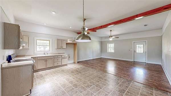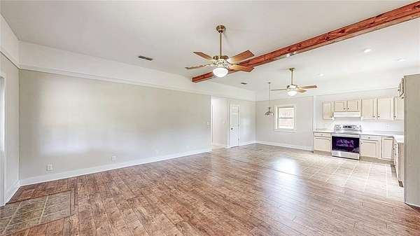 Country roads take me home to this amazing home in Flint. Incredible barndominium located in beautiful Flint, TX. on 4.037 picturesque acres and shaded by mature oak trees, this 3-bedroom, 2-bath home offers 1,800 square feet of thoughtfully designed living space. The open-concept layout combines the living, dining, and kitchen areas into one spacious and inviting hub which is perfect for gathering with family or entertaining guests.