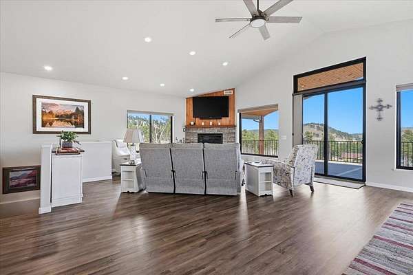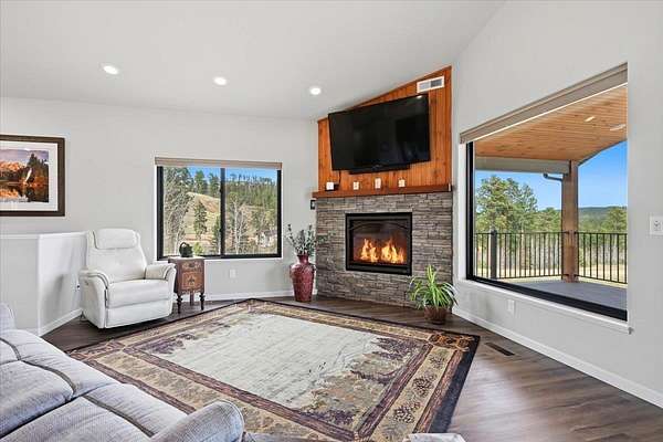 Listed by Britney Routh (605)641-2447 RE/MAX In The Hills. Welcome to this newer construction home built in 2024 located in the Brighter Day Subdivision just minutes from downtown Deadwood. This spacious home offers a private setting, flexible living spaces, and a seamless connection to its beautiful natural surroundings. The open floor plan is perfect for entertaining. This home offers 4 bedrooms, 3 bathrooms, a main floor laundry, two gas fireplaces, a newly finished basement and a 3 car garage, plus so much more. Step outside and fall deeper in love with this immaculate home. The covered deck offers the perfect place to enjoy the magnificent views of the Black Hills. The landscaping has been recently completed. Inside and out every detail has been carefully chosen. Give me a call today to set up a tour!