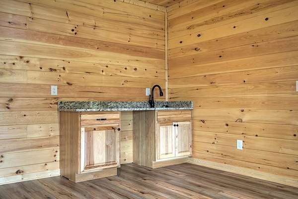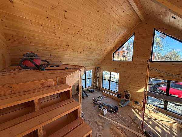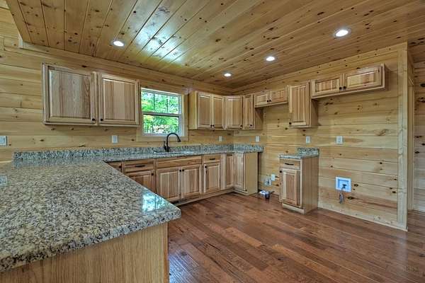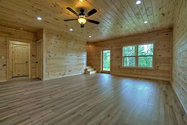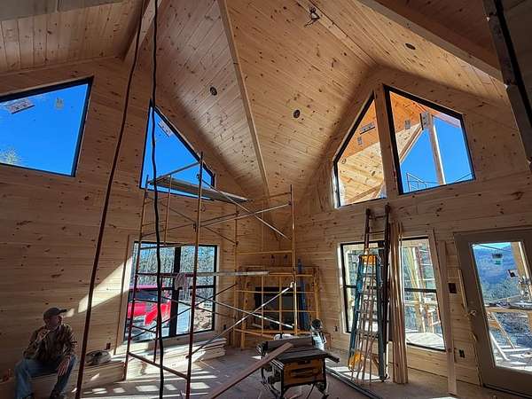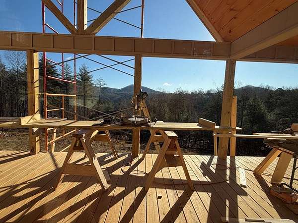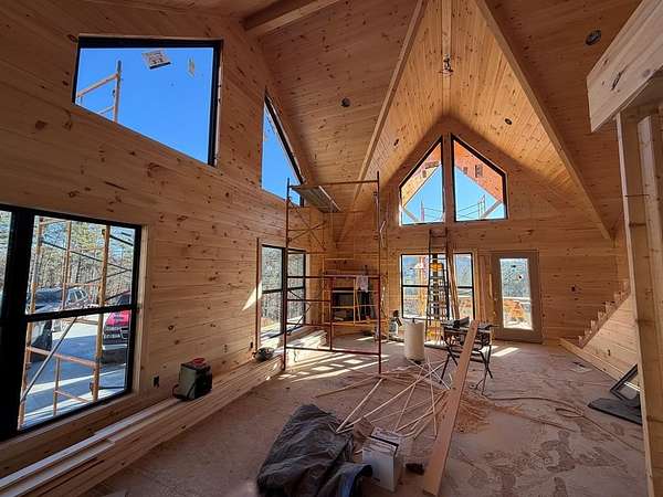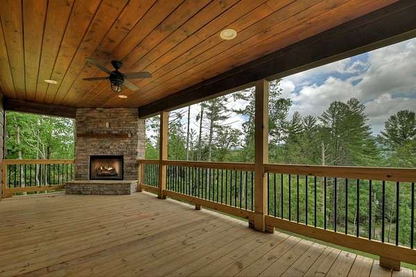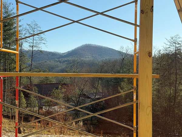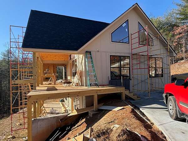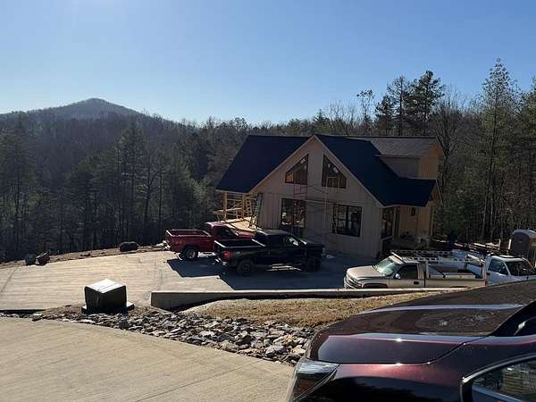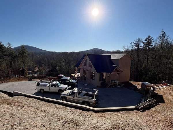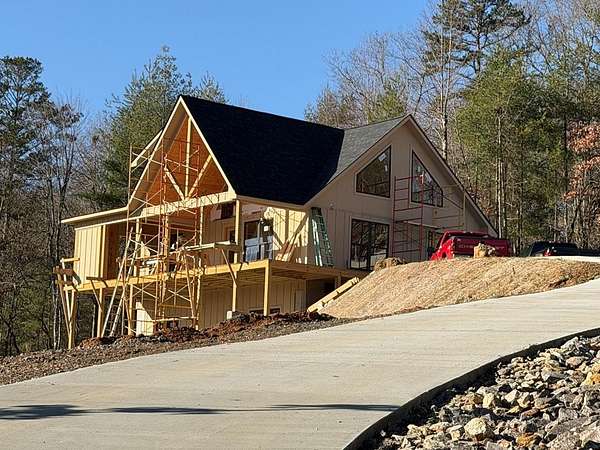 BRAND NEW AFFORDABLE CHALET Cabin with LONG RANGE MOUNTAIN VIEWS under $ 699k .Huge POURED CONCRETE PARKING Area w/Long Retaining Wall & Poured Concrete Driveway. Gable Covered "4-step" Back Porch Entry. Open Side Deck overlooking LONG RANGE MOUNTAIN View PLUS two 10' Covered Porches. Main Level Porch features an EXTERIOR Corner FIREPLACE. Great Rm w/Corner Stone Fireplace & featuring Fixed Glass in "Tall" Chalet Wall leading out to Chalet "Covered" Porch, All Wood Interior, Hardwood, Tile and Laminate Floors, Quality-Built Alderwood Custom Cabinets/Bath Vanities & Wet Bar w/Granite Countertops, Builder will install Appliances upon completion (2) Full Ceramic Tile Showers (Master & Terrace) & (1)Tub w/Tile Surround on Main. Upper Suite w/Cathedral Ceiling, Huge Bath offering Full Tile Shower & Super Sized Walk in Closet. Small Open Loft/Office Area overlooks Great Rm & Views thru the Chalet Fixed Glass. Full Finished Terrace Level w/3rd Bdrm, 3rd Full Bath & Huge Bonus Family Room featuring a corner Wet Bar. Poured Concrete "Wing Walls" support a 10' Terrace "Walk-Out" Concrete Patio. Plenty of Light thru Fixed Glass floods the Great Rm. NO Restrictions & So Close to NC & TN. Quality Upgrades include easy to maintain "Smart Siding" with Dual Fuel HVAC, Granite Countertops, Bronze Fixtures, Heat on Demand Hot Water & Custom Tile. Concrete Driveway is shared with Cabin on Lot 20A (w/recorded Shared Driveway Agreement). Short Term Rentals ARE Permitted. Tons of Poured Concrete for a "Clean" Homesite (limits erosion) Interior in progress. Stone Fireplaces