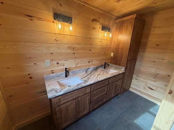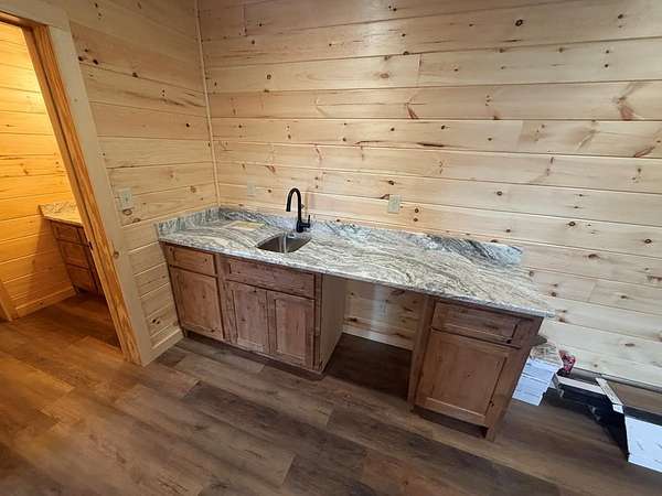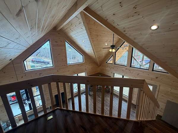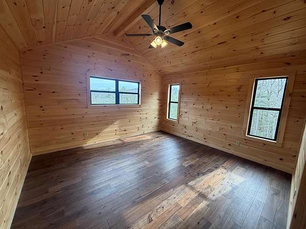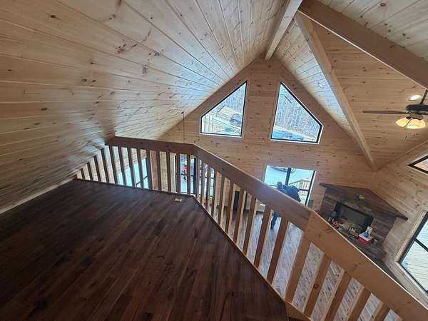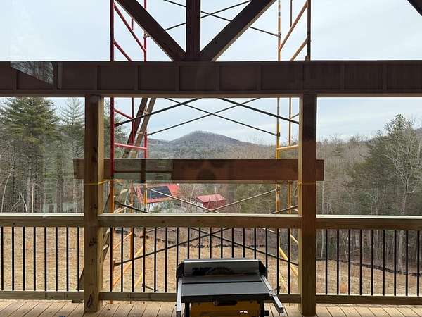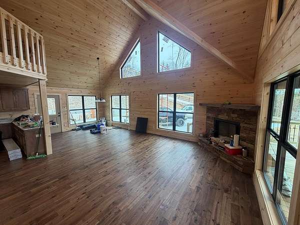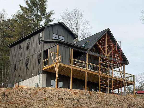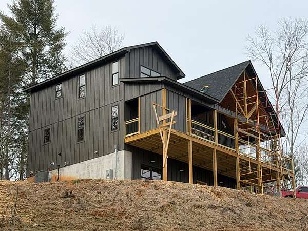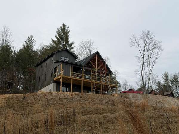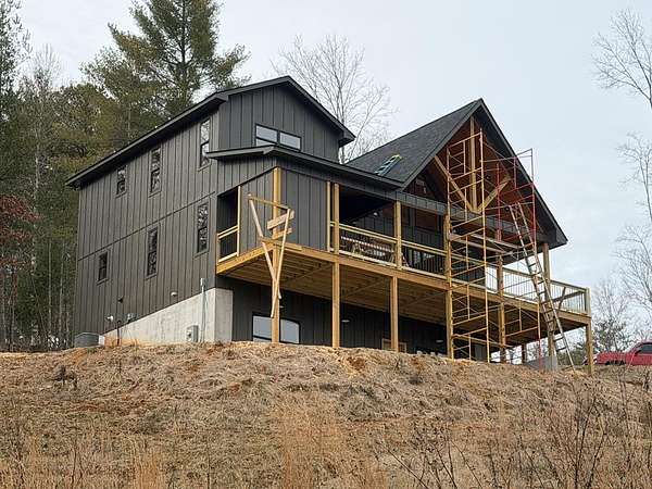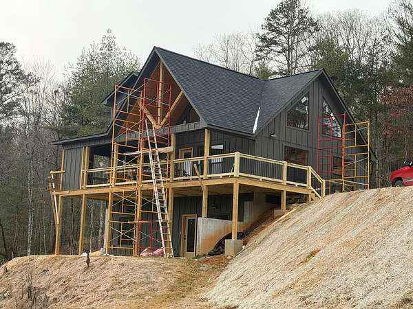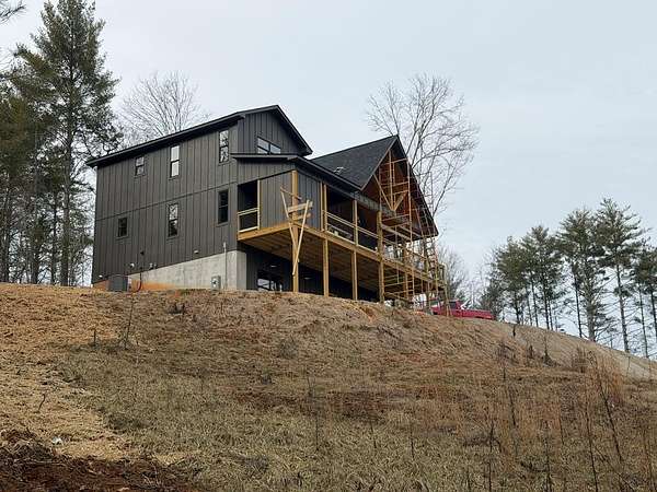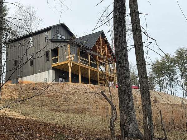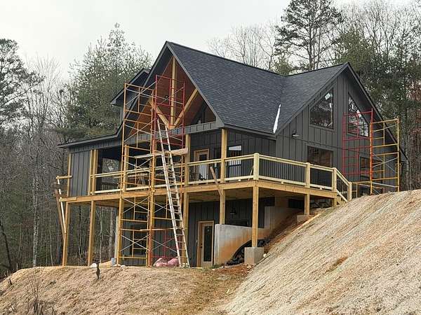 BRAND NEW AFFORDABLE CHALET Cabin with LONG RANGE MOUNTAIN VIEWS under $ 699k .Huge POURED CONCRETE PARKING Area w/Long Retaining Wall & Poured Concrete Driveway. Gable Covered "4-step" Back Porch Entry. Open Side Deck overlooking LONG RANGE MOUNTAIN View PLUS two 10' Covered Porches. Main Level Porch features an EXTERIOR Corner FIREPLACE. Great Rm w/Corner Stone Fireplace & featuring Fixed Glass in "Tall" Chalet Wall leading out to Chalet "Covered" Porch, All Wood Interior, Hardwood, Tile and Laminate Floors, Quality-Built Alderwood Custom Cabinets/Bath Vanities & Wet Bar w/Granite Countertops, Builder will install Appliances upon completion (2) Full Ceramic Tile Showers (Master & Terrace) & (1)Tub w/Tile Surround on Main. Upper Suite w/Cathedral Ceiling, Huge Bath offering Full Tile Shower & Super Sized Walk in Closet. Small Open Loft/Office Area overlooks Great Rm & Views thru the Chalet Fixed Glass. Full Finished Terrace Level w/3rd Bdrm, 3rd Full Bath & Huge Bonus Family Room featuring a corner Wet Bar. Poured Concrete "Wing Walls" support a 10' Terrace "Walk-Out" Concrete Patio. Plenty of Light thru Fixed Glass floods the Great Rm. NO Restrictions & So Close to NC & TN. Quality Upgrades include easy to maintain "Lp Smart Siding" that has a 30yr warranty, Dual Fuel HVAC, Granite Countertops, Bronze Fixtures, Heat on Demand Hot Water & Custom Tile. Concrete Driveway is shared with Cabin on Lot 20A (w/recorded Shared Driveway Agreement). Short Term Rentals ARE Permitted. Tons of Poured Concrete for a "Clean" Homesite (limits erosion) Interior in progress. Stone Fireplaces