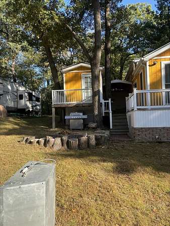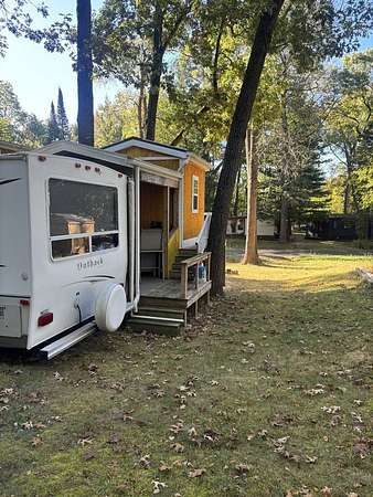 Discover the perfect retreat in the heart of nature with this charming property located inside Woodhaven Lakes, known for its beauty, security, and endless amenities. Woodhaven Lakes features 7 picturesque lakes, fishing ponds, a sandy beach, and recreational complex. Enjoy hiking trails, cross-country skiing and snowmobiling in the winter months. PLEASE NOTE that Woodhaven Lakes is creational community only-it cannot be used as a primary residence or homestead. This particular lot is a standout!!! It features a 2007 Outback trailer in excellent condition, complete with one private bedroom, a convertible dinette, and a comfortable sofa. The trailer comes fully furnished with all appliances and furniture included. In addition to the trailer, the property boasts a newly built loft designed for both comfort and style. The loft includes three cozy bedrooms, offering plenty of sleeping space. Step outside onto the spacious deck, where you can unwind with your morning coffee, host evening gatherings, or simply take in the peaceful surroundings and fresh air!! Do not miss the opportunity to own a piece of paradise in one of Illinois most sought-after recreational communities. Pack your bags and start making unforgettable memories at Woodhaven Lakes!