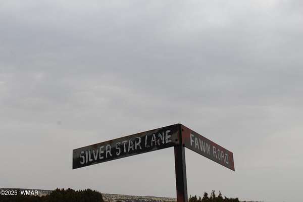 From Show Low Take Hwy 60 East 11 miles to Hwy 61 Approximately 10 miles to Apache County Road 8206. Follow 8206 around to acr 8001, then right to the end and left on acr 8014 approx .5 miles to Acr 8005 turn right for .25 miles. to Silver Star (no sign) then turn right onto the unmarked road for approximately 600 feet to sign and the property