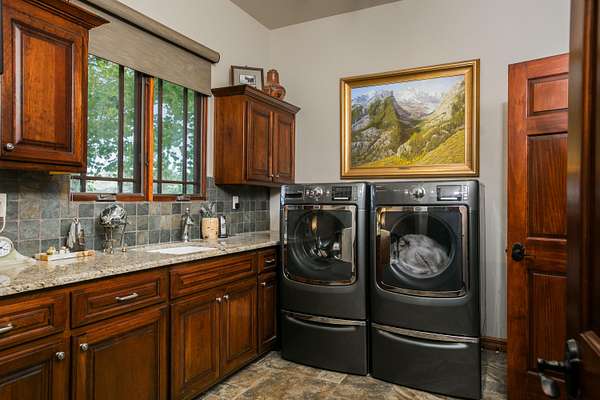 - Dishwasher, Disposal, Double Oven, Dryer, Free Standing Gas Range, Microwave, Range Hood, Refrigerator, Washer, Water Softener Owned, Wine Cooler