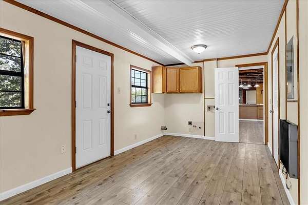 Make this Home Sweet Home! Fall in love with this charming rustic home just outside the city limits. Offering a two bedroom, two bath, with a great multi-use flex space. The versatile multi-use space offers unlimited potential that allows you to truly customize the home to fit your personal needs, rather it be a home office, fitness or hobby area, mudroom - you name it! Country living with in-town amenities close by. This home offers a nice floorplan with beautiful cedar wood beams and laminate floors installed in 2019 throughout most of the home. It has a spacious open floorplan with an Eat-In bar, plenty of cabinet and counter space. The laundry area has a full-size washer & dryer hookup with room for storage. New aerobic septic installed in 2021. Outside providing added flexibility for how you use the land, the property has a large fenced backyard for pets or play, plus multiple cleared and fenced areas for gardening or livestock. Additional highlights - Chicken coop, 8 dedicated chicken breeding pens with water and electricity, loafing shed, garage-storage workshop, Steel Storm Shelter located under the carport. Whether you're looking to homestead, raise a family, or simply enjoy peaceful country living, this one-of-a-kind property is ready to welcome you home. Schedule your private appointment today!