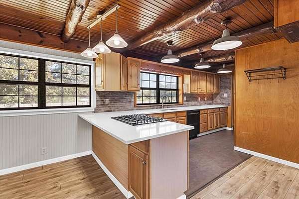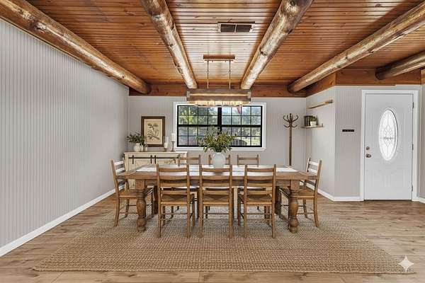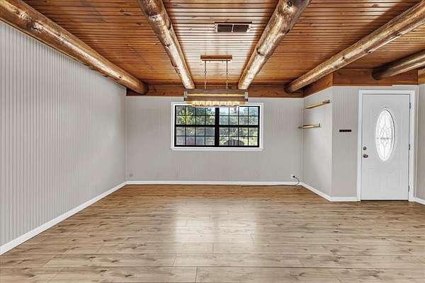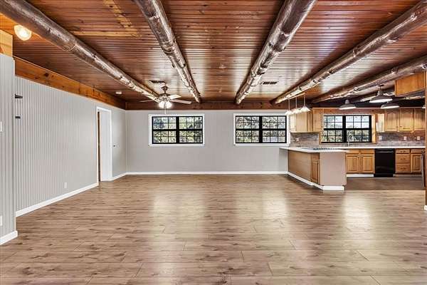 Make this Home Sweet Home! Fall in love with this charming rustic home just outside the city limits. Offering a three bedroom, two bath. The versatile multi-use third room offers unlimited potential allowing you to truly customize the home to fit your personal needs, rather it be a third bedroom, home office, fitness or hobby area - you name it! Country living with in-town amenities close by. This home offers a nice floorplan with beautiful cedar wood beams and laminate floors installed in 2019 throughout most of the home. It has a spacious open floorplan with an Eat-In bar, plenty of cabinet and counter space. The laundry area has a full-size washer & dryer hookup with room for storage. New aerobic septic installed in 2021. Outside providing added flexibility for how you use the land, the property has a large fenced backyard for pets or play, plus multiple cleared and fenced areas for gardening or livestock. Additional highlights - Chicken coop, 8 dedicated chicken breeding pens with water and electricity, loafing shed, garage-storage workshop, Steel Storm Shelter located under the carport. Whether you're looking to homestead, raise a family, or simply enjoy peaceful country living, this one-of-a-kind property is ready to welcome you home. Schedule your private appointment today! Disclosure: added Al digitally enhanced photos to illustrate the potential appearance with room staging, exterior white paint, black shutters, and simple landscaping.