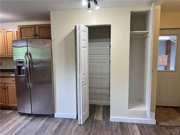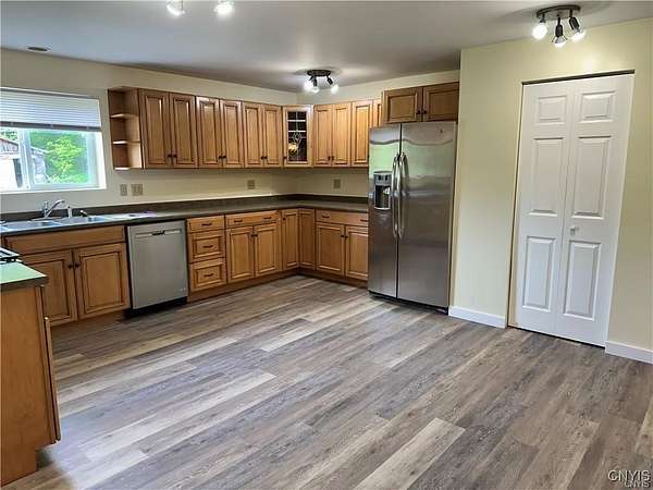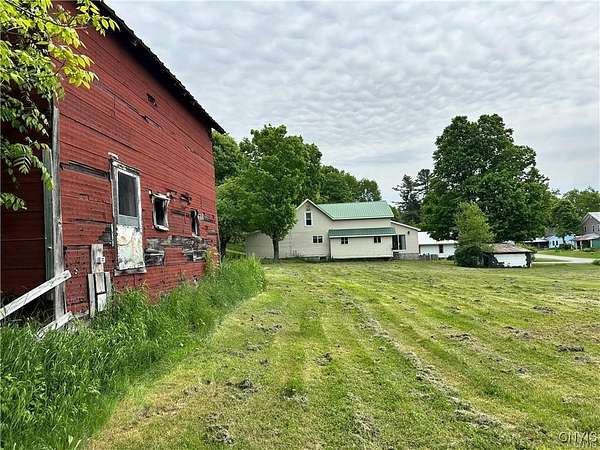 Welcome to the foothills of the Adirondacks as you enter this home through the attached garage, you will enter into the kitchen area, which has real wood, maple coffee glazed Shenandoah cabinetry. A new stove with microwave has also just been installed with a side-by-side refrigerator that offers ice and water at your fingertips a great reach and pantry with multiple shelves and a broom closet you will find in the kitchen. You'll enter into the dining room with lovely hardwood floors a nice chandelier adjacent to a living room on the other side of the dining room Sports a large main gathering room maybe for those Sunday sports fans. On the first floor, you will also find a full bath with laundry as you ascend up the stairs you'll find a half bath at the top of the stairs and four more bedrooms. Also finding the primary bedroom with a jetted corner tub in the en suite and primary closet. The hall also offers a cedar lined closet for storage. Outside, you'll find a secondary garage for storage. Maybe your collectors car could go there or just your lawnmower and other essentials so they do not take up space in your extra large attached garage. You'll find a beautifully manicure lawn as you stroll back to the small barn with old hand hewn beams and a loft for storage or possibly pay for your hobby farm. The spring does drain to a central location in the middle of the yard, which has been grated(a large commercial road type grate covers the entrance). The home is located at the dead end of the street, so no extra traffic to drive by. It is approximately 38 miles from Fort Drum. It is right off from state Route three also known as the Olympic Highway and CO. Rt. 58. Easy access great school district. Lots of wooded area to explore many opportunities. At this great location.