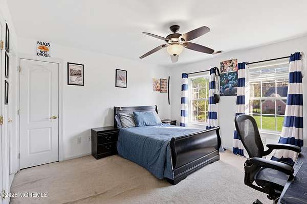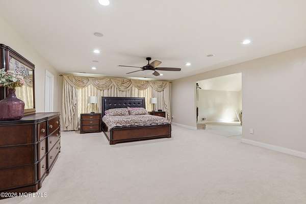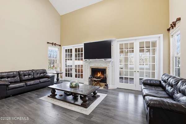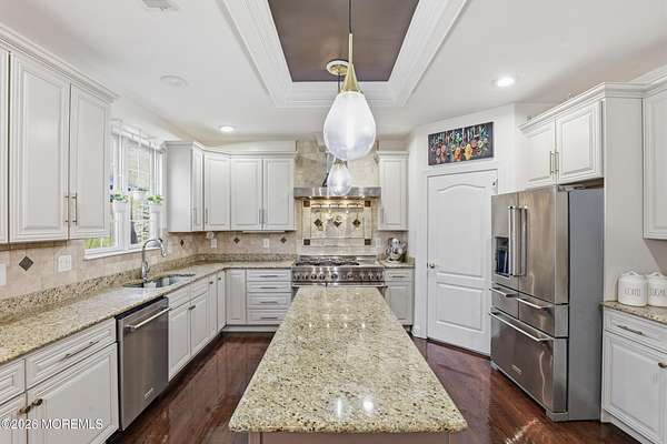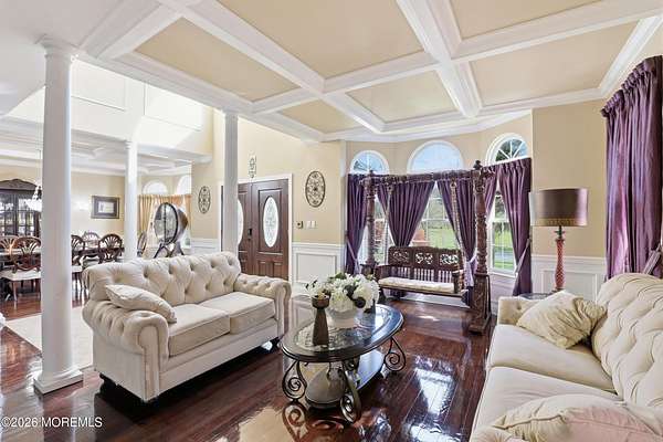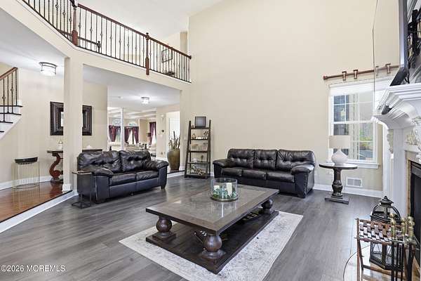 Est $8,514/moStunning brick-front colonial with approx. 4,400 sq ft, featuring 5 bedrooms, 3 full and 2 half baths, and a 3-car garage on 2.74 acres backing the woods. Grand 2-story foyer leads to formal living and dining rooms with wood flooring. Sunken family room offers cathedral ceiling and double-sided gas fireplace, opening to a study with French doors and wet bar. Gourmet kitchen with 42'' cabinets, granite counters, pantry, and butler's pantry. First-floor office/bedroom. Spacious primary suite with sitting area, fireplace, walk-in closet, and private bath. Princess suite plus Jack & Jill bedrooms. Must see finished basement with theater, gym, and more.
