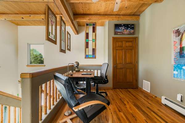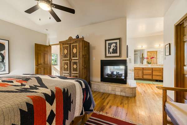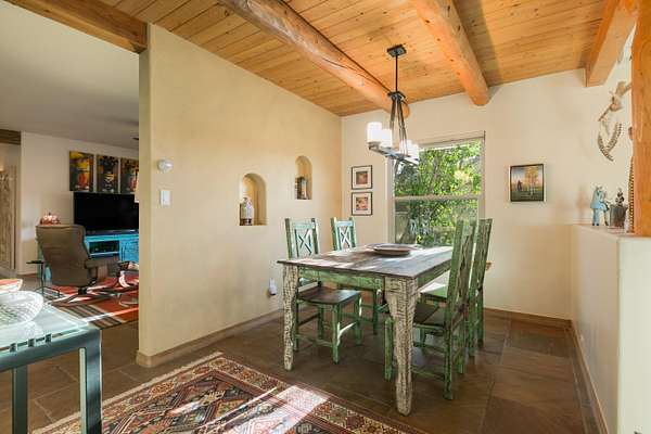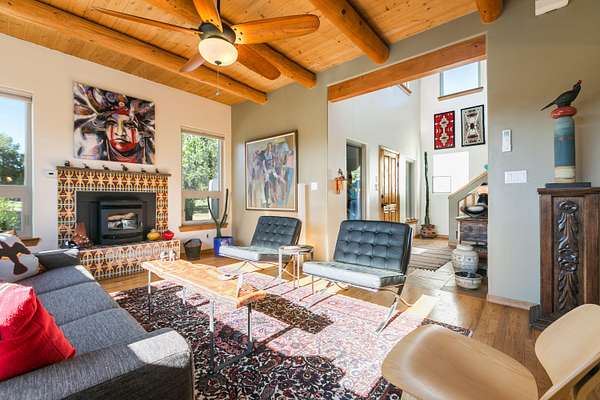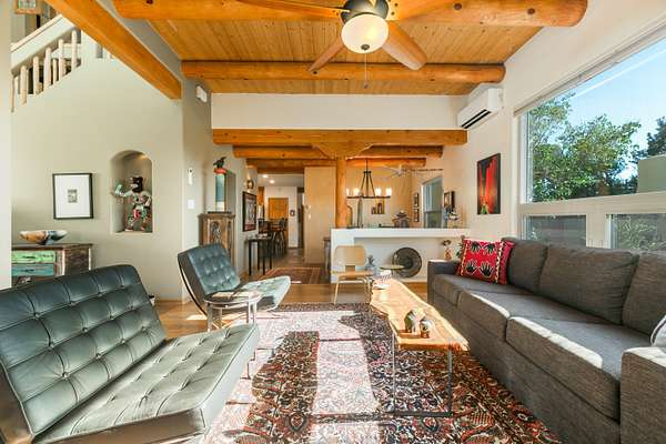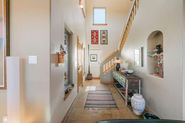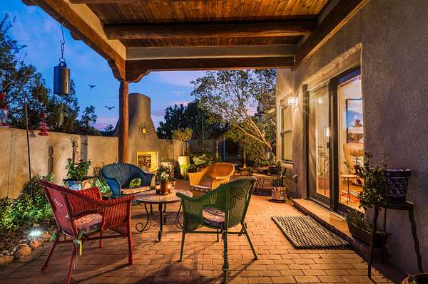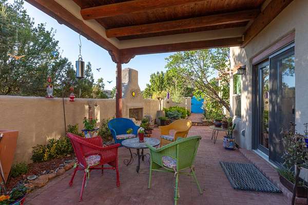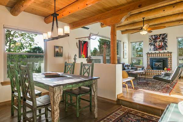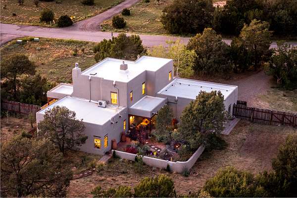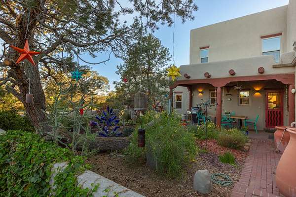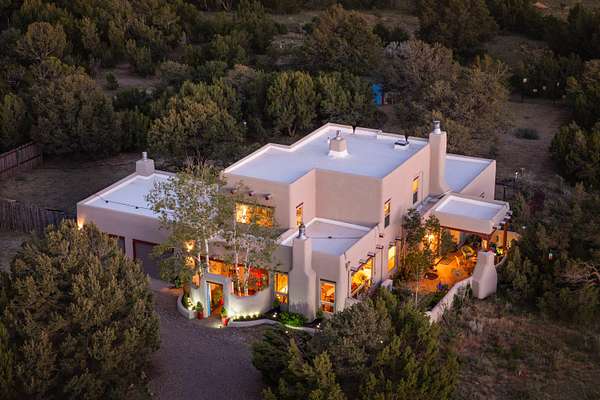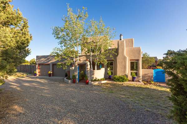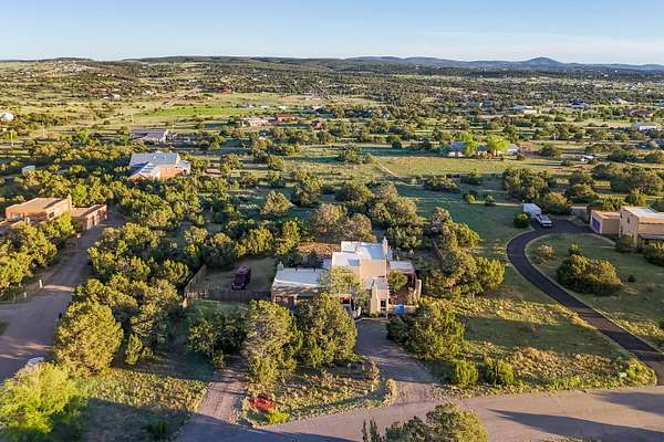 Beautiful night skies, mountain vistas, & serene peaceful courtyards await you in this stunning mountain home. Recent stucco, quality thermal windows, and TPO roof add to the mix!! View your own Aspen & huge NM skies from the large windows. Charming courtyard leads to elegant entry w/stone tile floors & 2 story ceiling. Vigas! Living rm with 3/4'' hardwood flrs, picture window framing backside of Sandias, & cozy pellet stove. Formal dining w/nichos. Kitchen w/granite counters, pantry, & stainless appliances is open to den w/kiva frplc & patio dr to courtyard w/frplc. 3 bdrms on main level, & 2.5 baths. Upstairs find loft and generous primary bedroom views, frplc, spacious walk-in closet & great bath w/tub, sep shower & double sinks. Oversized 2 car garage. Community water. Special home!