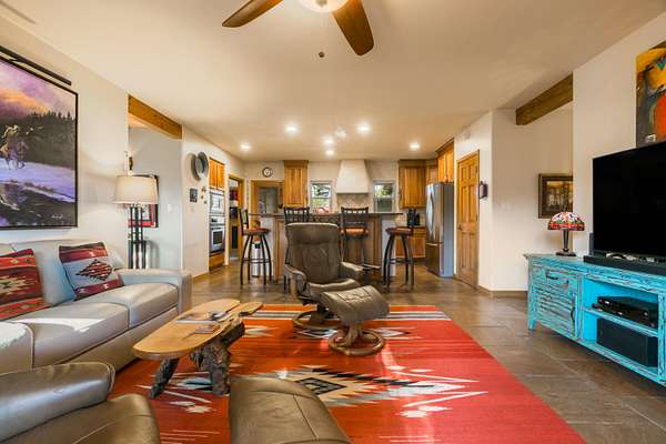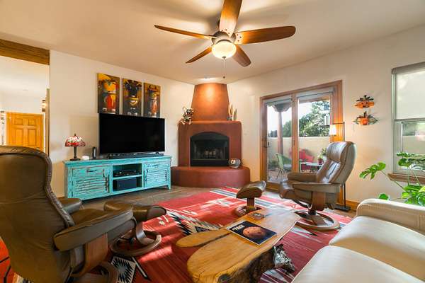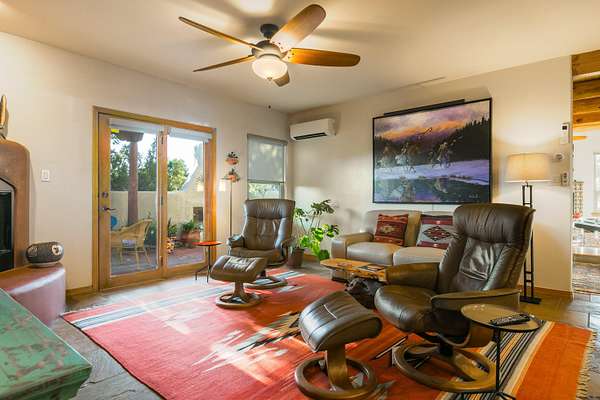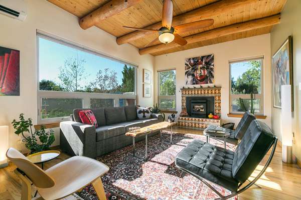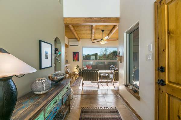 I-40 east to Cedar Crest exit, north on NM 14 to Frost Road; right on Frost 4.5 miles to Tumbleweed, left on Tumbleweed about .8 miles to sign for Ventana de la Sierra; west on Corte Ventana to home on left