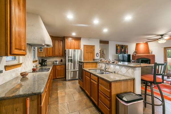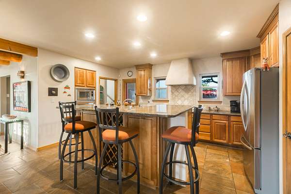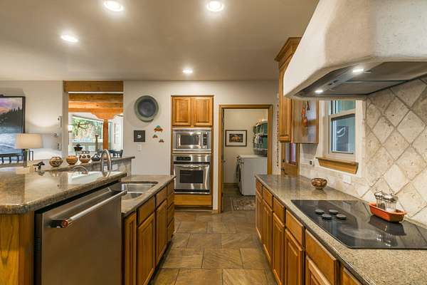- Beamed Ceilings, Breakfast Bar, Cove Ceiling, Dual Sinks, Entrance Foyer, Fireplace, Jetted Tub, Kitchen Island, Multiple Living Areas, Pantry, Separate Formal Dining Room, Separate Shower