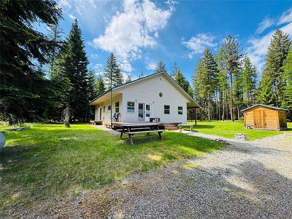 Level 5-acre tree covered parcel with no covenants or restrictions, located in a quiet residential area close to USFS and the Thompson and Clark Fork Rivers. The single level home is open concept with 2 bedrooms and 1 full bathroom with a spacious jacuzzi tub. A large, covered porch area off both sides of the house is the perfect spot to enjoy the views and the wildlife. A detached 24 x 28 garage provides great cover for vehicles and space for a workshop. A 10 x 14 shed has extra storage. Hiking trails meander through the tall trees on the property and a firepit spot is the perfect place to sit and enjoy the mature trees and quiet whisper of the forest. Just a few minutes to town, USFS access, and hiking/biking trails, this property is the perfect launching point for all of your adventures. Cross the high bridge to trails or the town of Thompson Falls. Equipped with everything you need, including fiber optic internet, electricity, propane, well & septic. With no covenants, build a shop, add a cabin, bring the animals, or park a large RV. Head to the mountains, bike to town, or head to the river to fish. . .The possibilities here are endless, so start your adventure today!