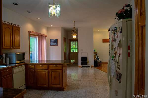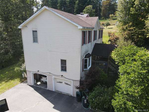 Charming Colonial on 3.73 Acres in Jeffersonville, NY Welcome to 21 County Road 164 - a spacious 2,464 sq. ft. Colonial set on 3.73 serene acres just minutes from the heart of Jeffersonville. With classic curb appeal, a covered front porch, and a paved driveway leading to a 2-car garage, this home blends privacy, comfort, and convenience. Inside, you'll find a thoughtful open floor plan with a natural flow. Beautiful oak hardwood floors, tile accents, and elegant archways create warmth throughout the main level. The bright living and dining rooms feature bay windows that frame peaceful views of nature, while sliding glass doors open to a large back deck - perfect for entertaining or quiet mornings. The kitchen comes equipped with a gas stove, refrigerator, dishwasher, and washer/dryer, making daily living a breeze. A powder room completes the first floor. Upstairs, the space offers four generously sized bedrooms, including a primary suite with a spa-like bath featuring dual sinks, a Jacuzzi garden tub, a corner shower, a custom-shelved walk-in closet, and a private dressing area. An additional full bath and convenient pull-down attic stairs provide even more space and storage. Other highlights include: Central air upstairs, Full walkout basement, Mature plantings and landscaping for privacy This home truly offers the best of both worlds - a private retreat surrounded by nature, yet close to town amenities, shops, and dining.