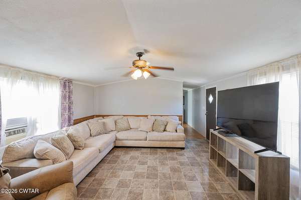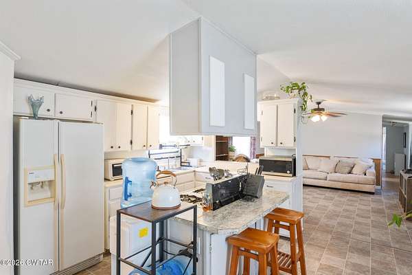 - Ceiling Fan(s), High Ceilings, Kitchen Island, Laminate Counters, Open Floorplan, Tub Shower Combo, Walk-In Closet(s)