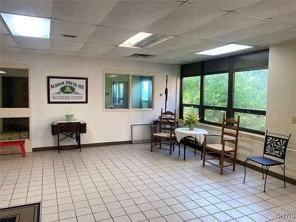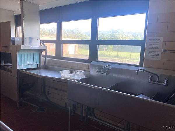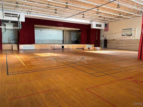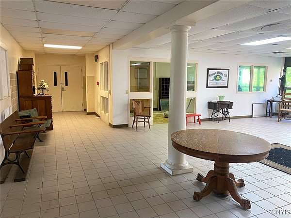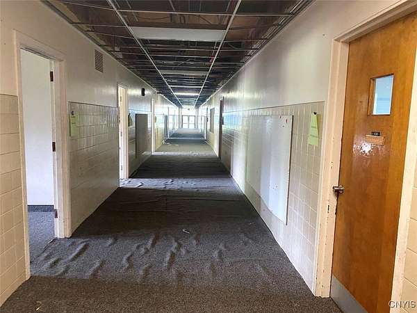 This commercial building is located on 4.8 acres in the Village of Angelica NY, Allegany County. Nestled in the heart of the historic Town of Angelica, this commercial property offers a rare opportunity for investors and developers alike. Formerly serving as both an elementary school and high school, this expansive one-story building spans over 40,000 square feet and sits on a generous 4.8 acre lot. The community is highly supportive of redevelopment welcoming a wide array of possibilities for this space. Whether you're envisioning a mixed-use center, office complex, senior assisted living facility, community center, or more, the potential is truly limitless. The building features a large gymnasium with auditorium, a spacious commercial-grade kitchen, and a generous dining area perfect for events or communal use. With a central main office area and three separate wings formerly used as classrooms, the layout is ideal for adaptive reuse. Outside, the property boasts ample parking and is within walking distance to Main Street, Park Circle, the post office, and the Angelica Library offering excellent visibility and convenience. Access to Interstate I-86 is just minutes away making this a prime location for regional connectivity. The Town of Angelica is known as The Town Where History Lives! Angelica has rich historical charm and vibrant community life hosting popular events like car shows, fairs, and seasonal gatherings. An existing survey is available providing a solid starting point for your development vision. Don't miss this unique opportunity to become part of a community that embraces its past while looking toward a dynamic future.
