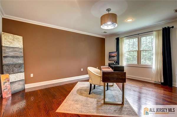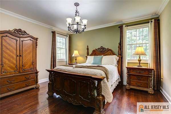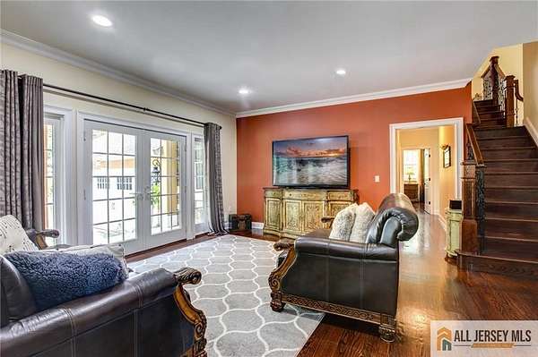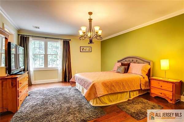 Welcome to this stunning east facing center hall colonial, offering nearly 4,000 square feet of elegant living space, nestled on an almost 2-acre private lot in the heart of East Brunswick, New Jersey. Built in 2012, this impressive home combines modern craftsmanship with timeless design, featuring a stately stucco faade and a commanding presence. Step inside to an inviting foyer with soaring ceilings that immediately set the tone for the home's grand interior. Gleaming hardwood floors flow throughout the main level, where you'll find a formal living room complete with a cozy wood-burning fireplace, a formal dining room perfect for entertaining, a spacious family room, and a true chef's kitchen with premium finishes. Also on the first floor is a generously sized bedroom and full bathrooman ideal setup for multi-generational living or hosting overnight guests. The second level offers four expansive bedrooms, each designed with comfort and convenience in mind. Every bedroom includes its own walk-in closet, while each guest bedroom features direct access to a private or shared bathroom. The luxurious master suite is a true retreat, highlighted by its size and an expansive en suite bathroom that provides the perfect place to relax and unwind. Set back from the road, this home's location offers a rare level of privacy while still being close to East Brunswick's highly rated schools, shopping, dining, and commuter routes. It's a perfect balance of seclusion and convenience, ideal for today's modern lifestyle.