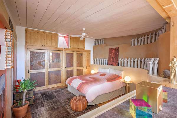 Gorgeous, upscale home with courtyard, neat patio, and natural landscaping. Solar Panels & high end, efficient energy system. Great location and easy access, just 20 minutes from downtown Taos, and 30 minutes to Taos Ski Valley. The 360 degree views are amazing! Exceptional investment opportunity as these units will rent up to 200 - 250 days per year or MORE! Live well and be kind to the environment! Off-Grid living at its best! One of the finest Earthship Homes in the Greater World Community!