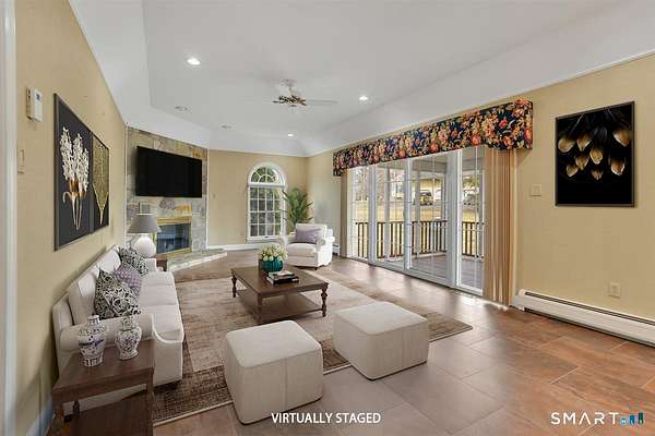 Stunning 4,414 Sq Ft Colonial in one of Watertown's most desirable neighborhoods! This beautifully maintained home offers exceptional space, comfort & versatility meeting multi-generational needs. Enjoy relaxing mornings & peaceful evenings on the inviting covered porch featuring removable screens. Inside you will find a large foyer with a grand spiral staircase. There is a large formal living room as well as a generous sized formal dining room perfect for entertaining family & friends. A gorgeous eat-in kitchen any home chef would enjoy is just off the dining area with a center island, large walk-in pantry, double ovens, dishwasher & cooktop make this a great functional kitchen. Off the kitchen is a large family room with sliders to the covered 3 season porch providing access to a beautiful brick patio. Upstairs there is a primary bedroom with ensuite & walk in closet. You'll also find 3 additional bedrooms, a full bath & a separate laundry room. Through the breezeway area there is an extra large office for working from home or great work out space. Upstairs off the breezeway is a guest area/in-law suite featuring a spacious living room/dinning room area, great kitchen, bedroom, full bath with a compact washer/dryer. This home is nestled on a professionally landscaped 1.92 acre lot! Don't miss this one!