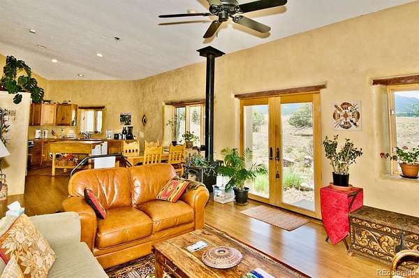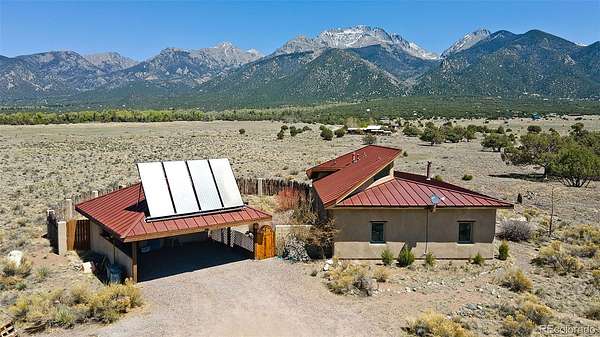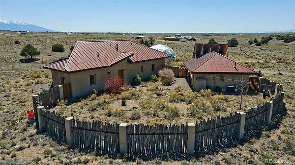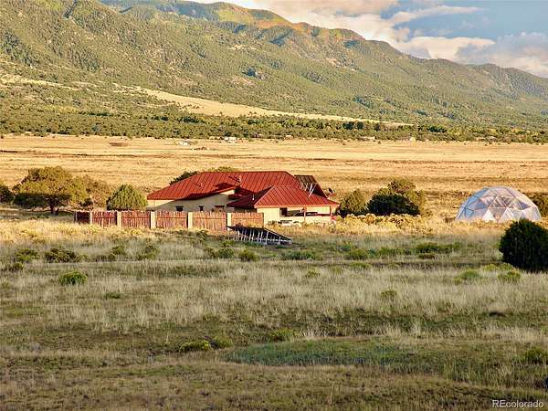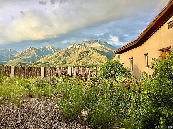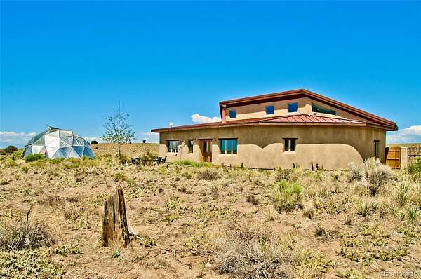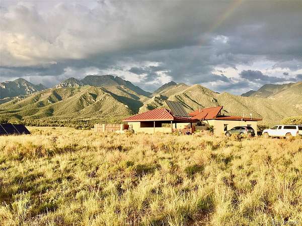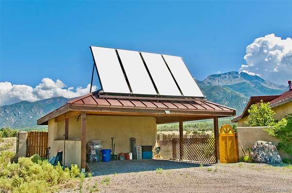 Your dream homestead awaits on 17.5ac in the beautiful Baca Grande, famous for magnificent vistas & unspoiled nature! All the lots off Mineral King Trl. Extra lot can be consolidated or saved for future development. Artisanal 2BD/2BA 1770sf home, carport, 160sf insulated storage, patio area, 850sf geodesic grow dome, fenced garden, pathways, solar PV & thermal. Desirable location off Brook Trout Rd, just south of Spanish Creek greenbelt/trails - rare privacy, seclusion & proximity to creek/greenbelt. Custom-crafted home is sustainably-designed around open-concept layout w/ kitchen, living & office areas at its heart. Plentiful SE glazing provides an abundance of views & natural light. Patio doors offer easy access to gravel patio, perfect for al fresco dining, entertaining, or R&R. 2BD/2BA are on either end of the hallway - optimal privacy. Designed w/ beauty & efficiency in mind, natural materials are featured throughout: bamboo flooring, plaster walls w/ 18" straw infill, adobe in the BAs. Robust energy systems ensure comfort & resiliency: thermal collector panels provide solar heat for domestic H2O & radiant floors, w/ Rinnai on-demand backup; 3kW PV array w/ battery storage supplements grid-tied convenience, adding some off-grid capacity; premium Lopi woodstove provides another heat source, for cozy winter evenings. In sum, several systems at hand to maintain a consistently-comfortable interior, w/ low utility costs. The exterior has equally compelling features: durable standing-seam metal roof & stucco exterior, circular Santa Fe–style cedar-pole fenced garden w/ stucco pillars, mature flowers, bushes & grasses, large unfenced acreage w/ sweeping views; deer, pronghorn & elk are frequent visitors. A pad is in place for 120V hot tub. Mature juniper trees offer shade. A short path leads to the 15' high, 850sf geodesic dome, featuring water tanks for thermal mass & goldfish - ideal for year-round cultivation! All this & only a 10-min drive to Crestone & amenities!