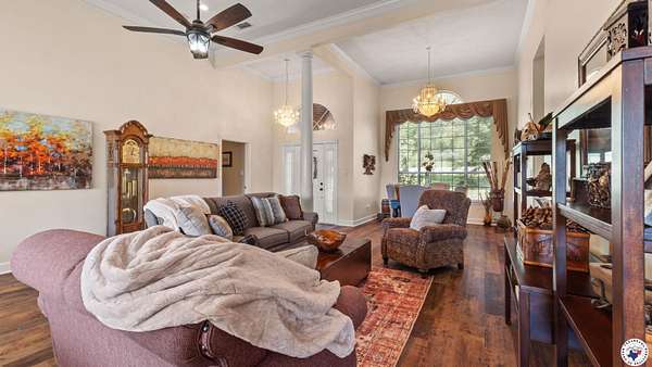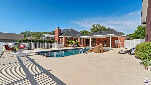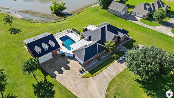 This stunning 5-bedroom, 4.5-bathroom brick home is located in the highly sought-after Red Lick school district and offers breathtaking water views from its quiet cul-de-sac location in the Quail Hollow neighborhood. The property features a beautiful gunite pool and waterfall, screened in porch with a hot tub, spacious 3.78-acres, and a game room perfect for entertaining. Recent updates include new vinyl flooring, a brand new roof, and newly renovated gunite and pool tile. The pool is surrounded by a new white vinyl privacy fence with spectacular waterfront views. There is an attached 2-car attached garage with an additional 2-car detached garage, providing ample parking and storage. The detached garage has a convenient pool bathroom and an apartment with all windows providing an amazing water view. With its peaceful and serene atmosphere, this waterfront estate is perfect for those seeking a staycation at home.