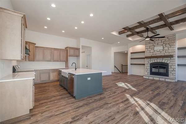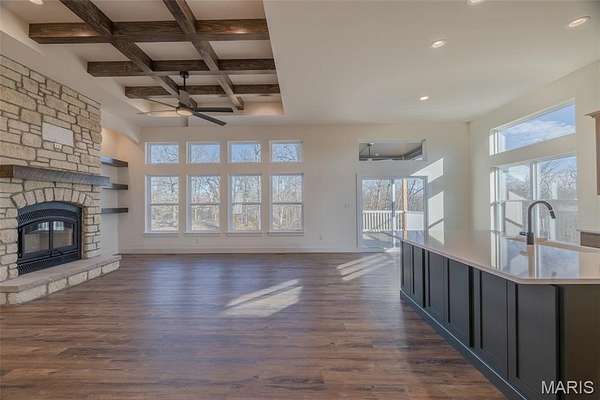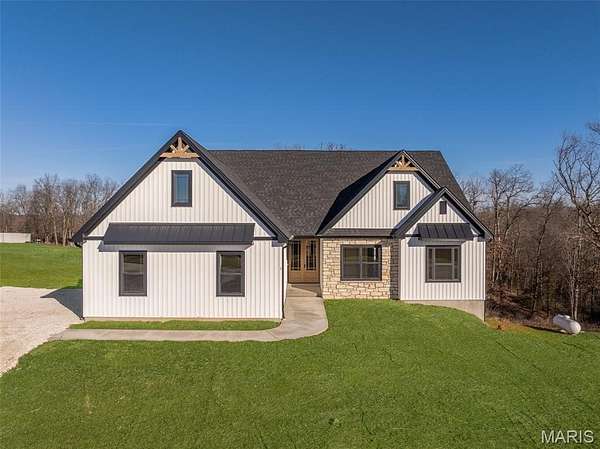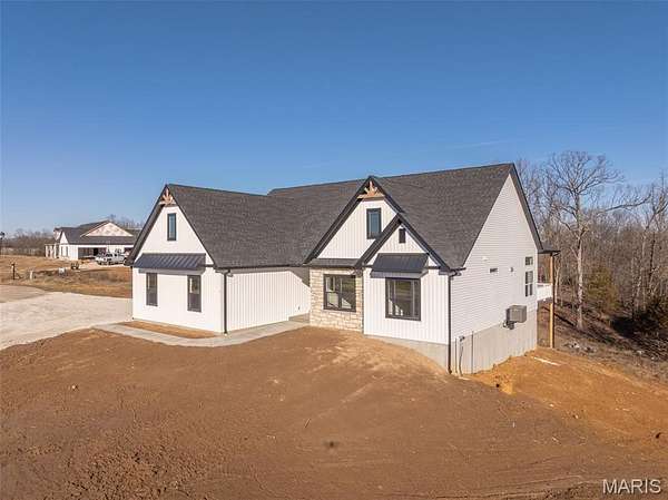 The search is over! A home of truly remarkable craftsmanship that checks every box sitting on 5+/- acres in Silex, Mo! This brand new home boasts 1950 sq ft of living space with 3 sizeable bedrooms and 2 full bathrooms. Enter through the 8ft nearly full glass door into your open main living space with 11 ft ceilings. Living room features a stone wood burning fireplace adjoined by recessed built in shelving, coffered ceiling with box beam inlay and a wall lined with over-sized windows accompanied by transom windows that let in so much natural light you'll never need to touch the light switch. The kitchen is magazine-cover worthy with full quartz counter tops, huge center island with farmhouse sink and enough cabinet space that the only thing you'll need to keep in the 8x5 pantry is food! Master bedroom is large enough to be considered its own apartment and has a 9x7 walk-in closet and ensuite bathroom with cave shower, double bowl vanity and linen closet. Walk-out basement is ready to be finished off however you could imagine and has extra water lines ran to easily put a wet bar and make it the perfect entertainment space. Have a project that needs finished up? Pull it in to the oversize 3 car garage measuring 30 ft wide and 25 ft deep with 8 ft tall doors and TWO 220 volt outlets and if you manage to fill that up, don't worry because there is a great spot on the property to build a detached garage/shop! Other features include 93% efficiency propane furnace with built in whole home humidifier and 14x14 back deck with disconnect for mini split if you ever wanted to enclose it and make it a 3 season room. Seed and straw to be completed in the spring when weather permits