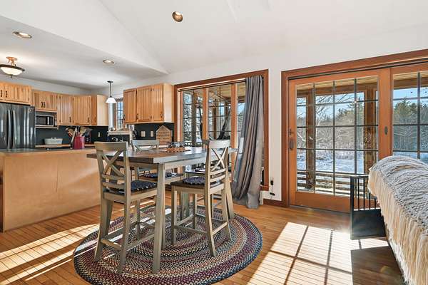 Welcome to the antique damn house!! Experience the perfect blend of comfort, privacy, and outdoor adventure on this beautifully maintained 2-bedroom, 1-bath home set on 45A+- acres in the heart of New Portland. This move-in-ready property features an inviting open kitchen and living area that extends onto a peaceful porch overlooking the Carrabassett RiveraEUR"an ideal spot to relax and take in the natural surroundings. A spacious family room with a stone hearth and adjoining office space opens directly to the lawn, offering plenty of room for gatherings or quiet evenings by the fire. The grounds are well landscaped and include an oversized garage, a barn, and additional outbuildings for storage, hobbies, or equipment. With over 2000 feet of frontage on both the Carrabassett River and Gilman Stream, including a small island covered with fiddleheads in the spring, this property is a dream for those who enjoy fly fishing, canoeing, or simply being by the water. Outdoor enthusiasts will love the direct access to snowmobile trails from the house and ATV trails right on the property. Despite its serene setting, it's an easy commute to Sugarloaf, Farmington, and other nearby amenities. A rare opportunity to own a large, versatile, and beautifully kept parcel in a highly desirable recreational areaaEUR"your Maine getaway or year-round retreat awaits.