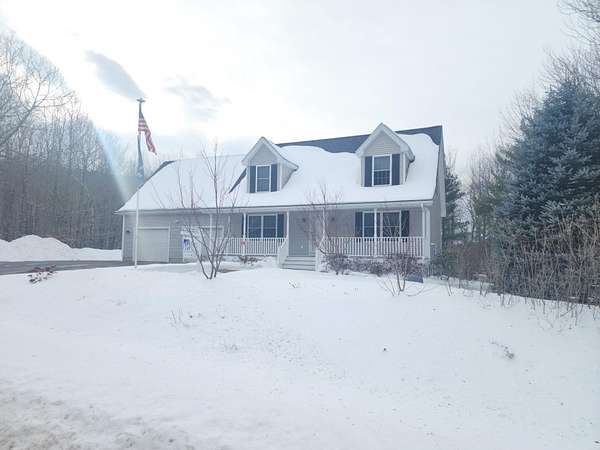 Just in time for spring! This beautifully maintained, low-maintenance 3-bedroom Cape sits on a private, level 2.01-acre lot in a peaceful 6-lot subdivision, offering the perfect blend of comfort, space, and easy living. Start your mornings on the charming farmer's porch with maintenance-free Trex decking, surrounded by mature landscaping and quiet neighborhood views. A wide paved driveway leads to an oversized garage and additional storage shed for all your extras.Inside, gleaming hardwood floors and an open-concept layout create a warm, inviting flow between the living room, dining area, and a well-appointed kitchen featuring granite countertops, cherry cabinetry, a large island, double ovens, and a glass cooktop-ideal for entertaining. Sliders open to a covered deck so you can enjoy the outdoors in any season.Designed for true peace of mind, this home offers central A/C, central vacuum, a standby generator, and low-maintenance systems throughout. First-floor laundry and a primary bedroom provide convenient one-level living. Upstairs, you'll find two spacious front-to-back bedrooms, a full bath, and bonus storage above the garage. The insulated walkout basement with on-demand hot water offers excellent potential for future finishing or expansion.Move-in ready, thoughtfully updated, and built for easy ownership-this is the home you've been waiting for.