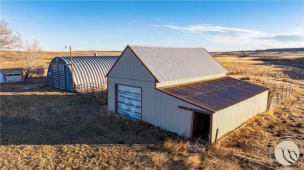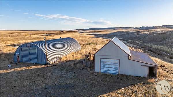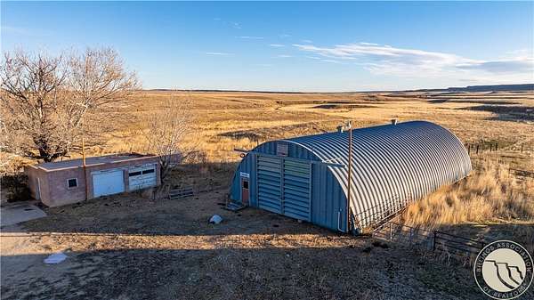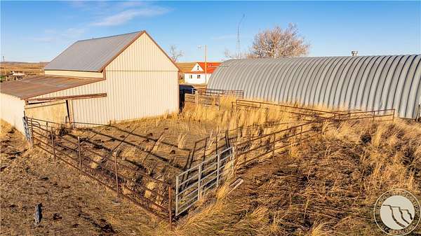 Est $1,325/moHome is 2 bed 2 bath. 2 car detached garage, spacious shop, newly redone livestock barn, corrals, bunkhouse, and additional detached garage. Property was previously being rented. A leased 150 gallon propane tank from Silvertip in Roundup. Well water is assisted by R2 system. Washer and dryer convey with property. This property is on a state lease that is held until 2030. Restrictions to the state lease can be found in the supplements. This property is being sold with the state lease and all buildings.