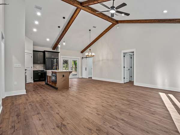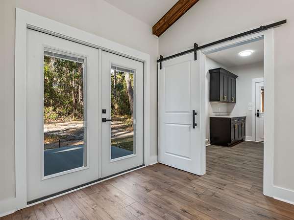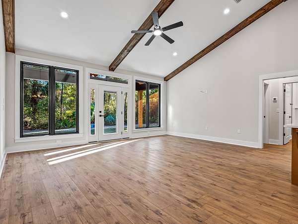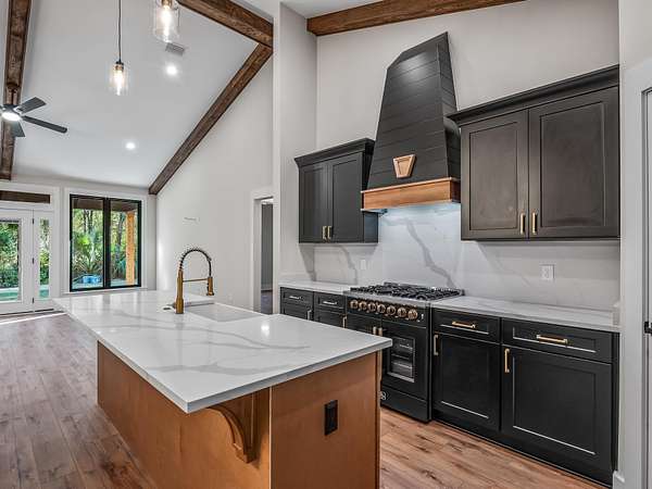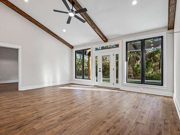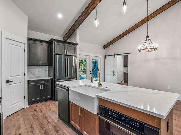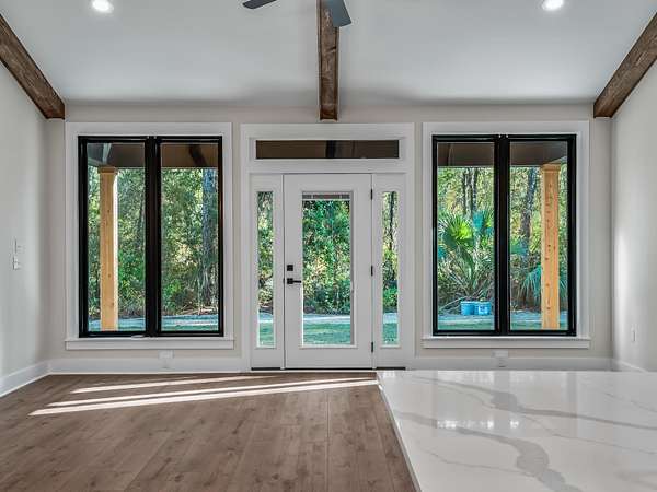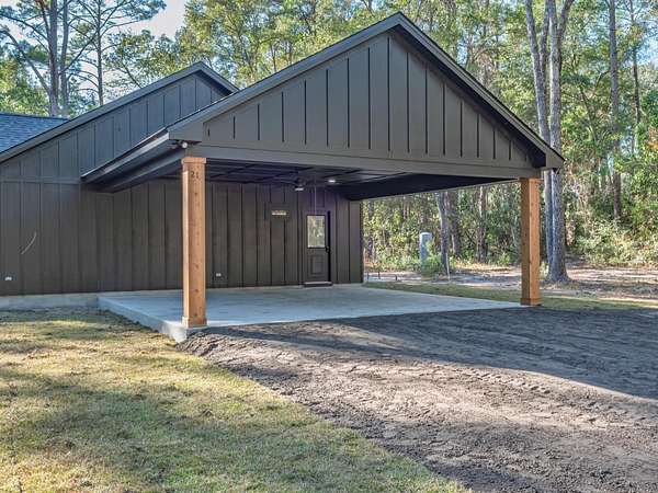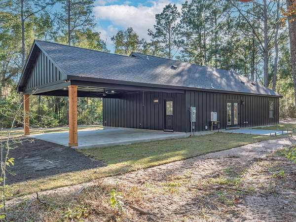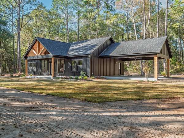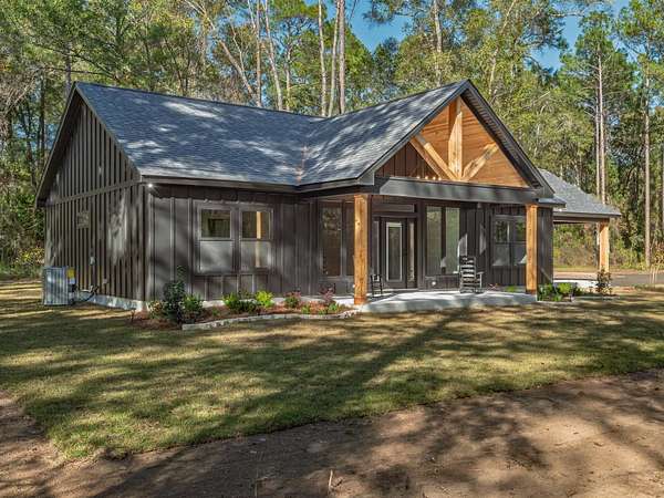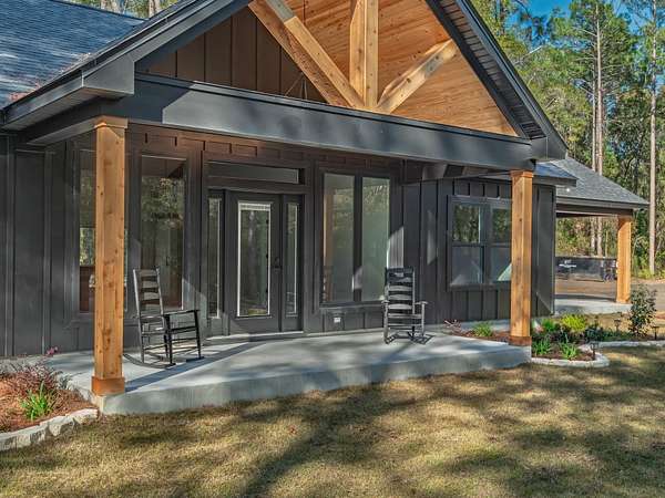 Welcome to this beautiful crafted 3-bedroom, 2-bath ranch-style retreat nestled on 3 private, wooded acres along scenic Highway 98. With 1,472 sq ft of thoughtfully designed living space, this home offers both comfort and style. The inviting 20x8 ft covered front patio with tongue and groove ceilings and rough-cut cedar posts and trim sets the tone for the natural charm found throughout. Inside, enjoy an abundance of natural light from the oversized windows that frame serene wooded views. The open-concept living area features luxury vinyl plank flooring throughout, while the designer kitchen boats Quartz countertops and custom cabinetry. The bathroom are finished with beautifully tiled showers, including a spa-like master bathroom paired with a large walk-in closet. Additional highlights include a 24x24 attached 2-car carport for convenience and plenty of space to enjoy the outdoors. Gable front porch and vaulted living room and kitchen, with beautiful custom stained wood beams in ceiling. This home blends rustic elegance with modern finishes, making it the perfect escape while remaining close to the coast.
