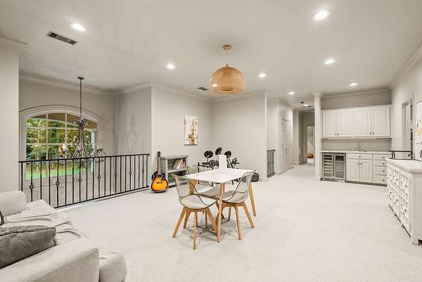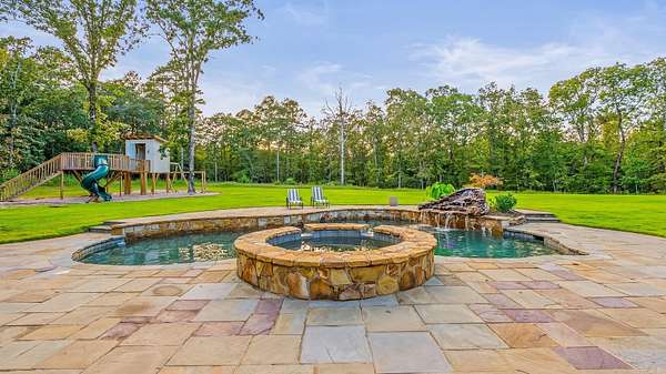 This is convenient country luxury, a bike ride from Pinnacle - with 6 beds & 4 baths on a flat 5 acres inside the prestigious Somersett Estates. Through the gate at the end of this quiet cul-de-sac, your illuminated tree-lined circling driveway, that’s big enough for a pickleball court, welcomes you home with the brand new roof, freshly painted exterior, & all new smart irrigation. Inside: remodeled (now open) plan w/ all new lighting. Two livings each with gas log fire. Vaulted dining. Kitchen: waterfall quartz Breakfast island by hearth room & window wrapped breakfast area. Covered courtyard: waterfall hot tub & heated pool, premium playground +sports field. Main level primary suite w/ gas log fire. +Convenient Office / nursery suite. 2 stairways to Bonus balcony + 4 Beds & 2 Baths. ~2k heated & cooled workshop w/ covered patio, 2 garage bays, +storm shelter.