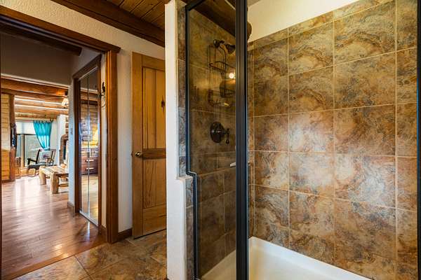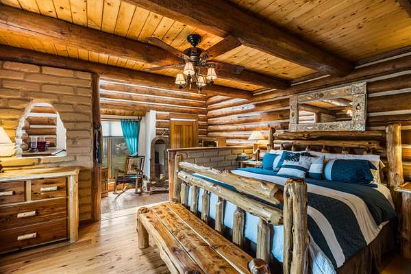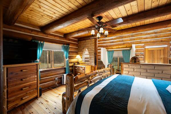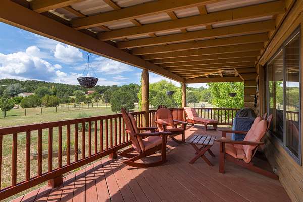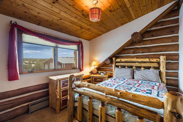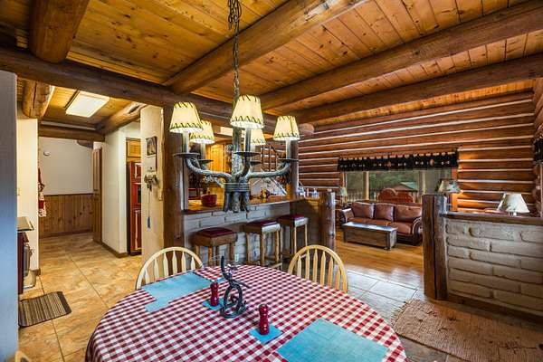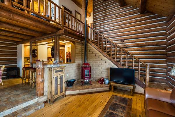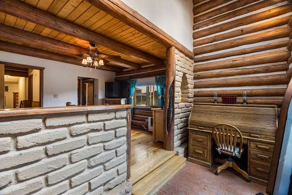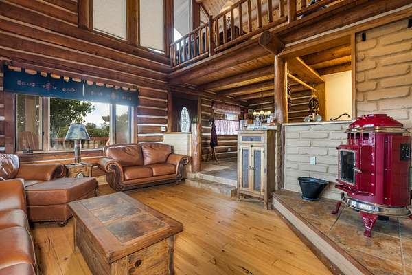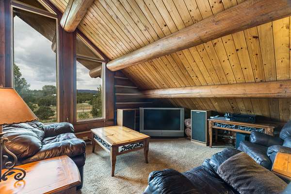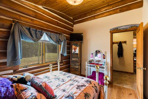 Step into your dream home in the scenic beauty of Tijeras NM. Only 25 minutes from the city. This is a genuine adobe/log home with an expansive deck to relax and enjoy the majestic views anytime day or night. Distinctive antique appliances are gorgeous! Pellet stove to keep you warm. Beautiful wood floors, hand shaved hickory and knotty pine. This charming home boasts a delightful blend of modern convenience and country charm. Incredible 2000sf workshop/garage which includes 3 sectional doors, the center door is 12x14 and the other 2 are 10x12. Bring your bus/rv/boat any toys! Corral for horses also. Spectacular property. Propane and water softener owned.