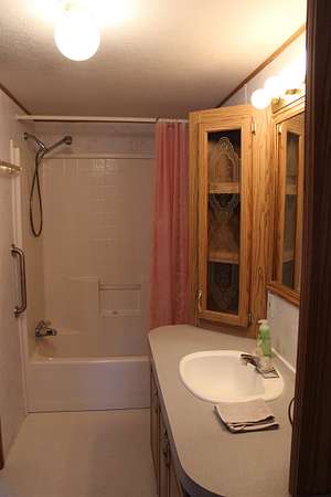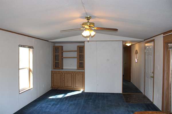 Check out this affordable "cottage" in the woods! Well cared for and gently lived in manufactured home on nearly 5 treed, level acres. Settle in to a spacious ensuite with full bath. This home features an open kitchen area with dining space, great storage and beautiful scenery looking out of the big, bright bay windows and sliding glass door. Outdoors offers fresh exterior paint, 2 covered deck entryways, brick patio area, a huge 2 car garage with extra storage space, and another shed. With a little TLC the raised garden beds have a ton of potential, along with the enclosure for chickens or goats and you'll have the perfect hobby farm just in time for spring. You won't find a prettier setting at this price that is move in ready and paved roads all the way!