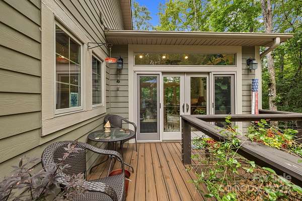 Enjoy the privacy of this 2+ acre cul-de-sac, level lot in prestigious Connestee Falls. Close to the east gate entrance and the countless amenities offered, this open and light filled home offers all the luxury and comfort of new construction. Recent updates include HVAC, roof, driveway, decking and all baths with granite and tile finishes. The spectacular sunroom offers a quiet space to read, surrounded by nature, wooded views from all rooms add to the peace and tranquility while the extensive hardwoods, vaulted ceiling with skylights, cozy fireplace, natural light, expansive decking and outdoor eating area, and chef's kitchen add to this most welcoming and comfortable of homes. The walk-in pantry, large laundry room, and oversized garage with workshop space and sealed floor all add to the main level ease of household chores. The lower level family room walks out to a second expansive deck and seating area and the storage space handles all your holiday decorations and keepsakes.