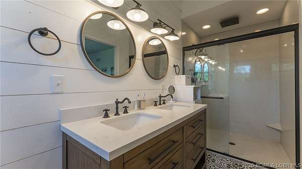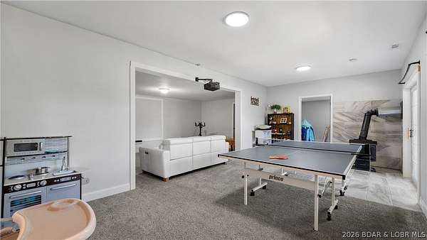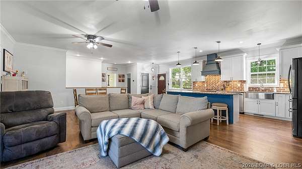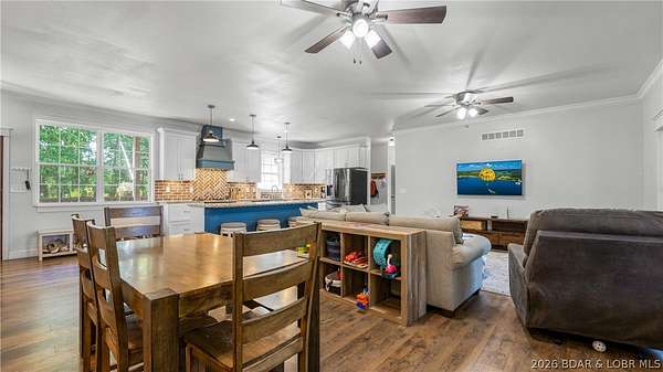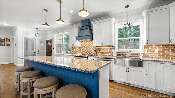 Only minutes from the conveniences of Osage Beach, you are tucked in your private country setting with total seclusion and privacy. This modern country home features craftsman detail and tons of space on two levels with plenty of room to spread out. Upper level offers open floor plan with open kitchen, dining and living area with easy maintenance LVP flooring. The dream kitchen has two tone cabinets, large island, granite countertops, farmhouse sink, and brick backsplash. Enjoy the outdoors in your large covered porch giving the treehouse feeling. The large master suite has custom accent tile and shiplap accents in the bath. Two additional bedrooms make one-level living convenient. Lower level offers large movie room and 2 huge guest bedrooms an additional bonus room gives you endless possibilities. Enjoy the quiet setting, no neighbor piled on top of you, wildlife year around, wet weather creek, and so much more. Don't miss this rare opportunity!