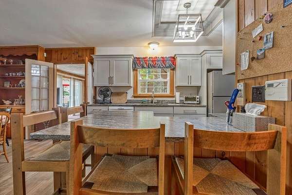 Lakeside living at its finest on beautiful Norway Lake. This well-maintained home offers the ease of one-level living with an open-concept layout and thoughtful upgrades throughout. The updated eat-in kitchen with granite countertops flows seamlessly into the living room with a cozy fireplace, while a sunlit den with sliders opens to a brand new trex wrap-around deckaEUR"perfect for entertaining or soaking in the water views. Outdoor living at its best with a charming wooden patio/dock perched over the lake. Oversized 4-car tandem garage with a finished bonus room above, complete with a full kitchen and bath, ideal for extended family, guests, or a private home office or ADU. Just five minutes to downtown Norway's shops, dining, and conveniences, this property combines tranquility and accessibility for the ultimate retreat or vacation getaway.
