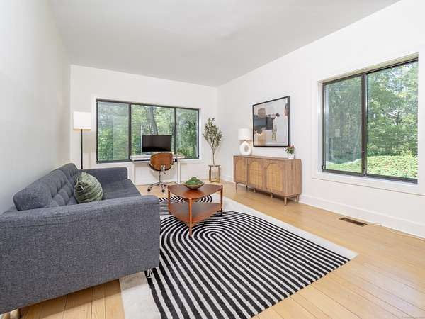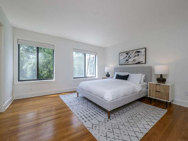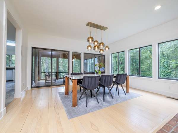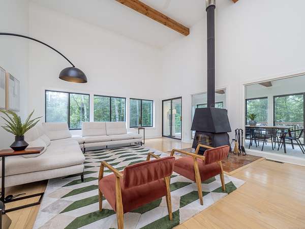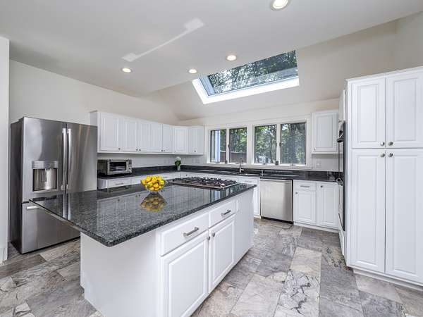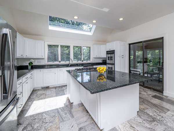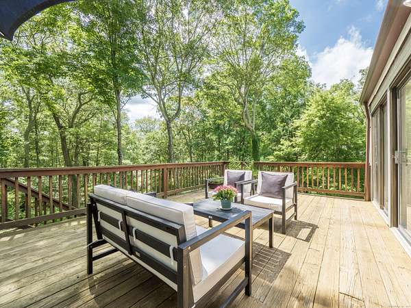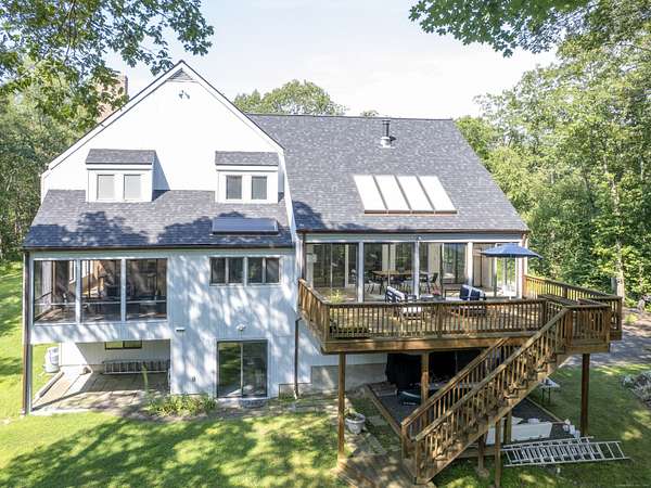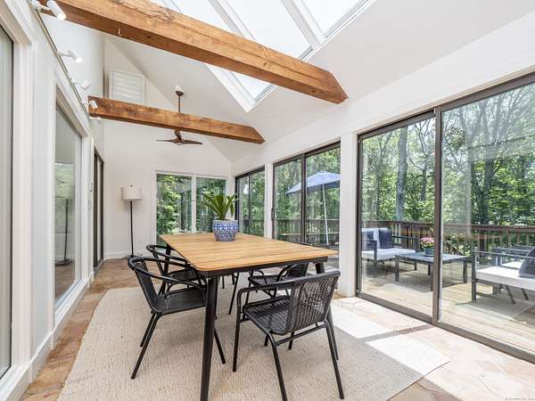 Tucked away on a quiet cul-de-sac in coveted South Wilton, just moments from Wilton and New Canaan town centers, this striking contemporary blends architectural elegance, refined finishes, and serene natural beauty. Surrounded by lush landscaping with sweeping views of Thayer Pond, the property offers a rare private dock: an ideal setting for year-round enjoyment. This friendly, walkable neighborhood is ideal for biking, running, or leisurely strolls with your dog. Bathed in natural light, the home features expansive interiors and seamless indoor-outdoor living. The chef's kitchen with granite countertops, gas cooktop, and double ovens opens to a dramatic family room with vaulted ceilings and a wood-stove, perfect for everyday living and entertaining. A sunroom flows effortlessly to the expansive deck, creating a stunning setting for year-round dining with pond views. The first floor office, (possible bedroom?), is adjacent to a full bath. Every bedroom in the home enjoys its own private ensuite bathroom, offering privacy and convenience.The luxurious primary suite features a fireplace, dressing room, and spa-inspired bath.Two additional ensuite bedrooms capture peaceful treetop and pond views.The walkout lower level provides excellent in-law or au pair potential, featuring a spacious recreation room, an ensuite bedroom, and an expansive storage area with large windows for an office, gym, or studio.This home is moments away from top Wilton schools, Lake Club, & Metro North.