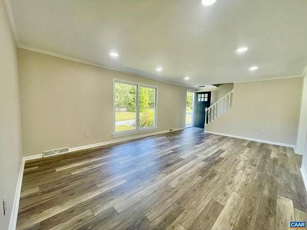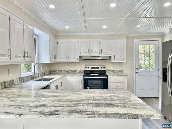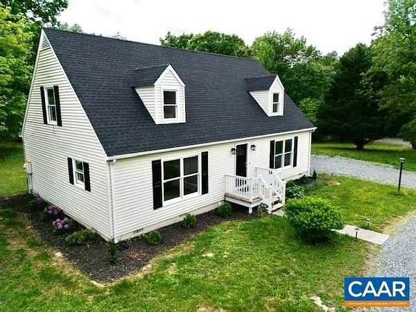 Perfectly positioned between Richmond and Charlottesville, this beautifully remodeled Cape Cod sits on 1.5 acres in the highly desirable Zion Crossroads area. NO HOA! Enjoy effortless access to I-64 plus shopping, dining, and everyday conveniences just minutes away. The home shines with fresh updates inside and out--new flooring throughout, stylishly tiled bathrooms with modern vanities, and a fully equipped kitchen with stainless steel appliances. Step outside to your expansive brand-new deck, ideal for hosting cookouts or relaxing in your private, tree-lined setting. With 4 bedrooms--including a main-level primary suite--there's room for everyone. Two additional spacious bedrooms upstairs make for flexible living, and occupancy for up to 6 is permitted. Major updates provide peace of mind with a NEW roof, NEW deck, and recently replaced HVAC and hot water heater. Plus, Firefly fiber internet keeps you seamlessly connected for remote work or streaming. This move-in ready home checks every box--modern updates, fantastic location, and a semi-private lot.