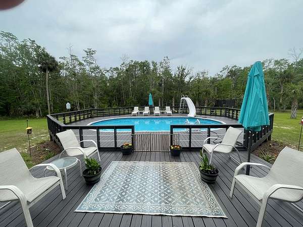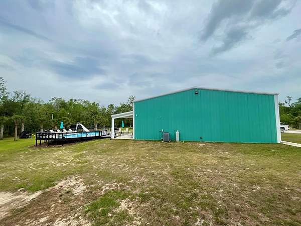 Take a look at this incredible price drop on a stunning property in Steinhatchee! This gem includes a 4-bedroom, 3-bathroom, 2,152 sq. ft. main house and a 2-bedroom, 1-bathroom, 1,057 sq. ft. barndominium on 10.01 acres. The main house offers a spacious living room, a gourmet kitchen with a large island perfect for cooking and entertaining, and a separate dining area with a pantry. The primary suite features a walk-in shower, soaking tub, and dual vanities, while the other three bedrooms are on the opposite side of the split layout--two share a Jack & Jill bathroom, and one is near a hall bath. The mudroom, which doubles as the laundry area and houses a gas-powered On-Demand water heater, leads to the backyard. Outside, enjoy the large back porch, a custom playground, a 15x35 above-ground pool, and expansive acreage. The 50x80 Red Iron Steel Building provides storage for boats, tractors, and equipment with pass-through garage doors and a loft. It also houses the barndominium, complete with a kitchen, living area, and poolside patio. The property features a 4-spot RV area with hookups, a stocked pond with a waterfall, an 8-foot high-fenced garden, and a chicken coop. Two wells service the property--one for irrigation and the pond, and the other with a water softener system for the house and shop. Additionally, there are two septic systems.