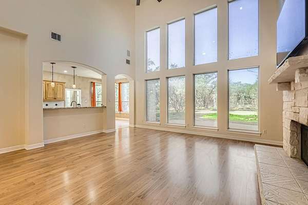 This stunning home is well secluded, sitting on 5 acres 1/8th of a mile off the road, accessed by a driveway that winds through the forest and over a stream/creek. The property comes with a large barn that has space for 4+ vehicles and is equipped with a two-post hydraulic lift, large capacity air compressor, long workbench and loft. Alongside the barn is a large covered area where other vehicles can be stored out of the elements. The rear area has a fully fenced yard to keep critters out and pets in and has multiple other fenced areas for a vegetable garden, chicken run, goat pens and more. Most of the property is natural forest with a walking trail that winds around the property, and at night you can sit outside, look up at the stars, listen to the water flowing through the creek, and forget you are 5 minutes from civilization. The beautiful pool is heated, has color-changing party lights, 2 waterfalls, an umbrella, and a beach area. Inside the home the internet is powered by Spectrum. The AC is zoned with 3 HVAC units. There are 4 bedrooms plus a 5th room which can be a media room or bedroom. There is 1 half baths and 3 full baths. The kitchen is very large and has all the appliances, including a trash compactor and refrigerator. It has a dining area, walk-in pantry and breakfast bar. The property is close to schools, shopping, restaurants, and main arteries.
